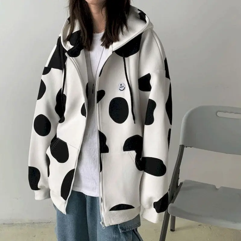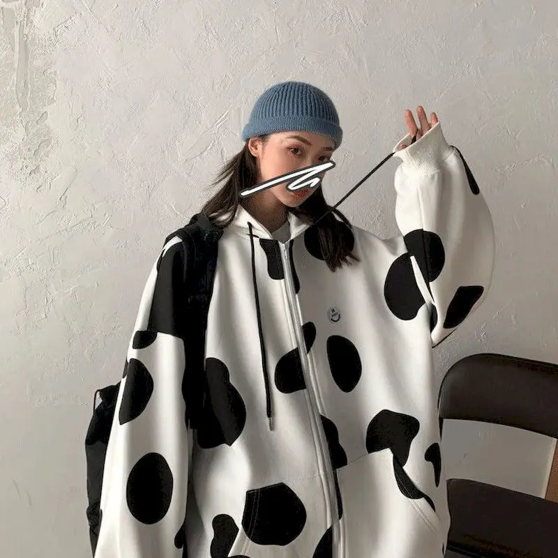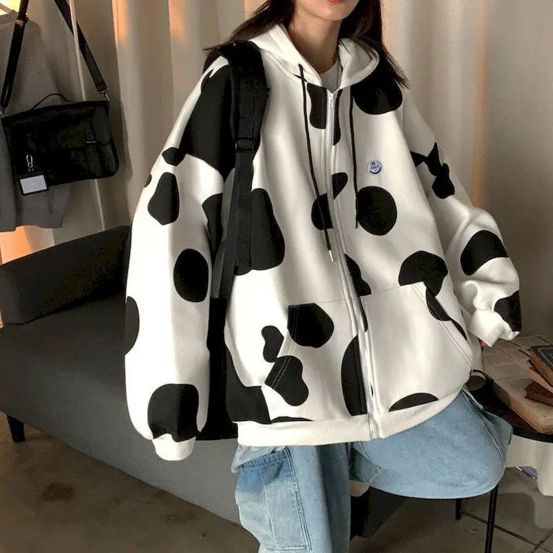 Новинка Осень-зима 2021 корейское пальто свободная Студенческая одежда с коровьим принтом модный топ Женская одежда оверсайз Goth KWAII