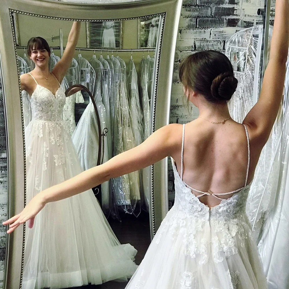 UZN элегантное белое ТРАПЕЦИЕВИДНОЕ свадебное платье с кружевной аппликацией цвета слоновой кости, милое сатиновое свадебное платье без рукавов, свадебные платья из фатина с открытой спиной и лямками