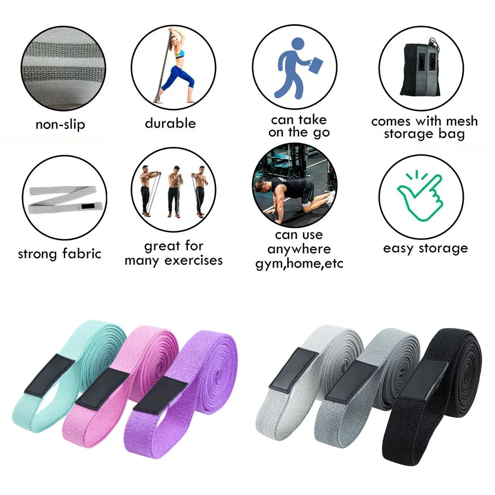 Комплект эластичных лент для фитнеса, комплект из 3 тканевых эластичных лент для упражнений на бедра, Нескользящие, для занятий спортом