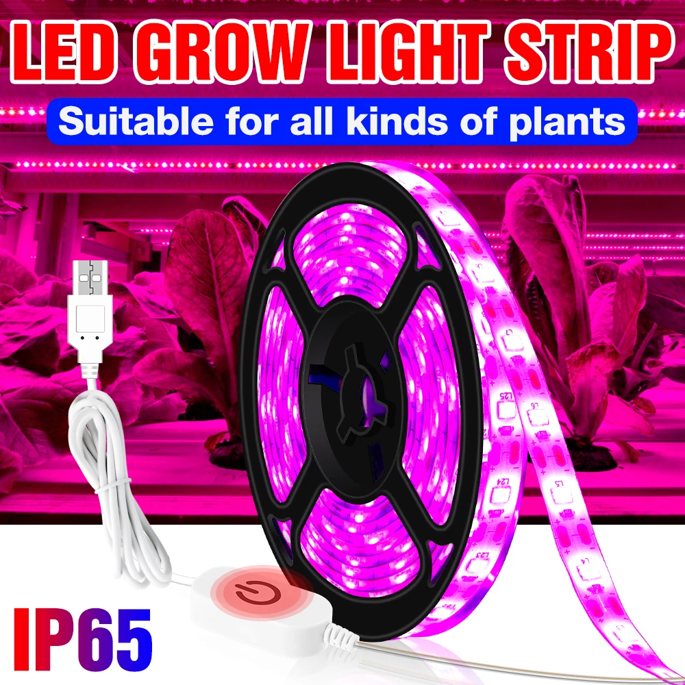 Светодиодная лампа полного спектра для выращивания растений, USB светильник фитолампа для роста растений, Светодиодная лента 0,5 м, 1 м, 2 м, 3 м, 5 В, приглушаемая Сенсорная лампа для выращивания семян, саженцев