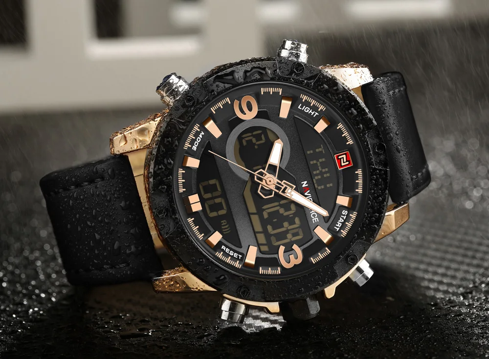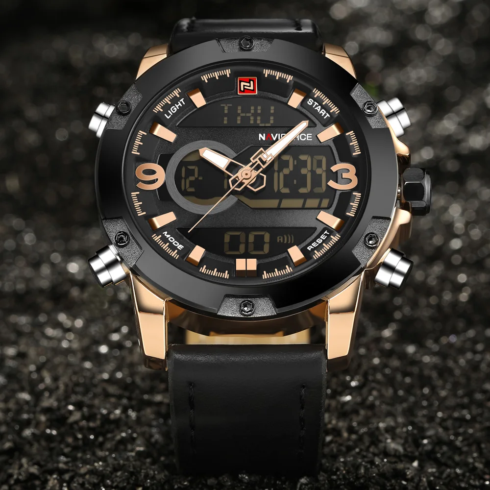 Для мужчин кварцевые часы NAVIFORCE бренд Для мужчин кварцевые аналоговые цифровой светодиодный спортивные часы Для Мужчин Армия Военные Наручные часы Relogio Masculino