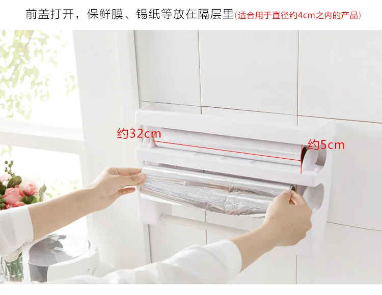 Настенное крепление 4 в 1 держатель для бумажных полотенец стойка для хранения бутылок с соусом ABS резак для пленки многофункциональная кухонная стойка из оловянной фольги Органайзер