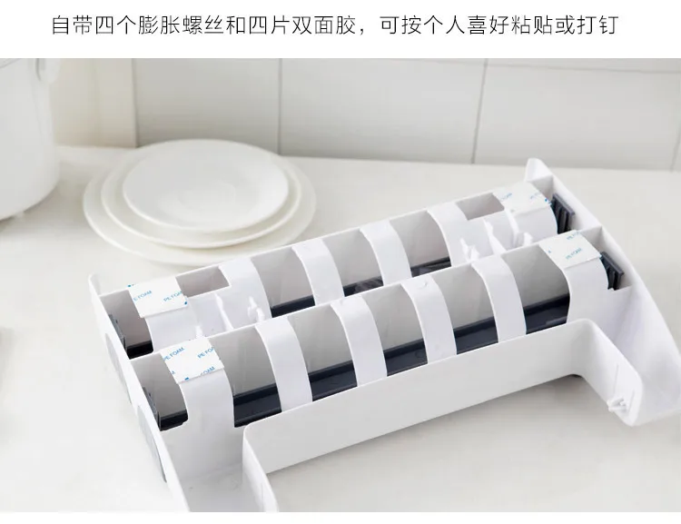 Описание товара:Название продукта: кухонная пленкаФункция: кухонное хранилище, держатель для бумажного полотенцаМатериал: АБС-пластикРазмер: 390*100*240 ммЦвет: белый, серый, хакиХарактеристики продукта:1. Функция: этот продукт может разрезать пленку, оловянную фольгу и бумажные полотенца2. Встроенный 2 вида режущего ножа: треугольный нож и круговой прокатный нож3. Установка: поставляется с 4 расширительными винтами и 4 пластиковыми, в соответствии с личными предпочтениями, пастой или гвоздем.4. Экономия пространства: его можно установить на стену, окно, холодильник, шкаф в кухонной комнате.5. Простота установки: винты и клейкая лента. Этот продукт с висящими отверстиями, так что вы можете повесить его на гвозди стены.Примечание:1. Пожалуйста, учитывайте разницу в 1-3 мм из-за ручного измерения, спасибо.2. Из-за разницы между различными мониторами изображение может не отражать фактический цвет изделия.