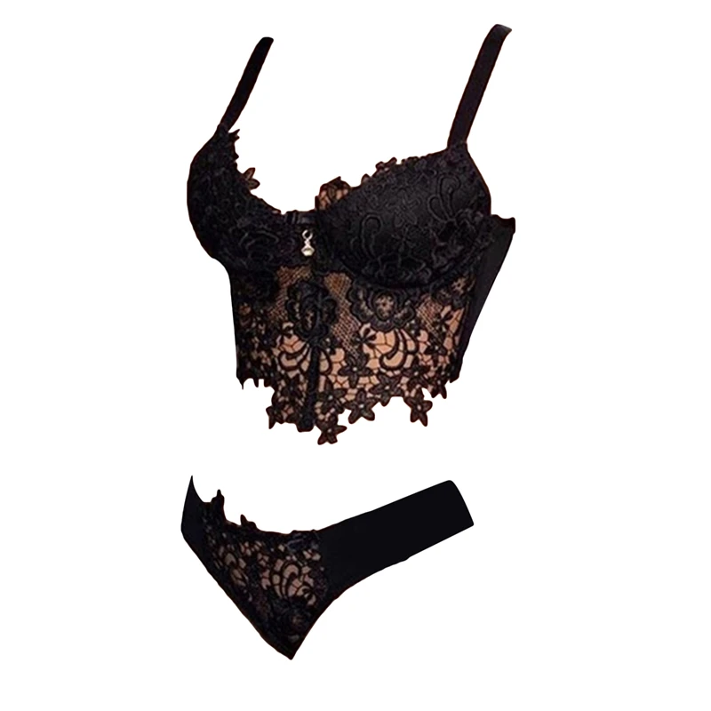 Сексуальное нижнее белье 2 шт.компл. Для женщин Прозрачная кружевная ночная сорочка бюстгальтер с цветочным принтом женские t-стринги в нижнее бельё для девочек; Комплект одежды для сна из нижнего белья бюстгальтер + трусики наборы для ухода за кожей