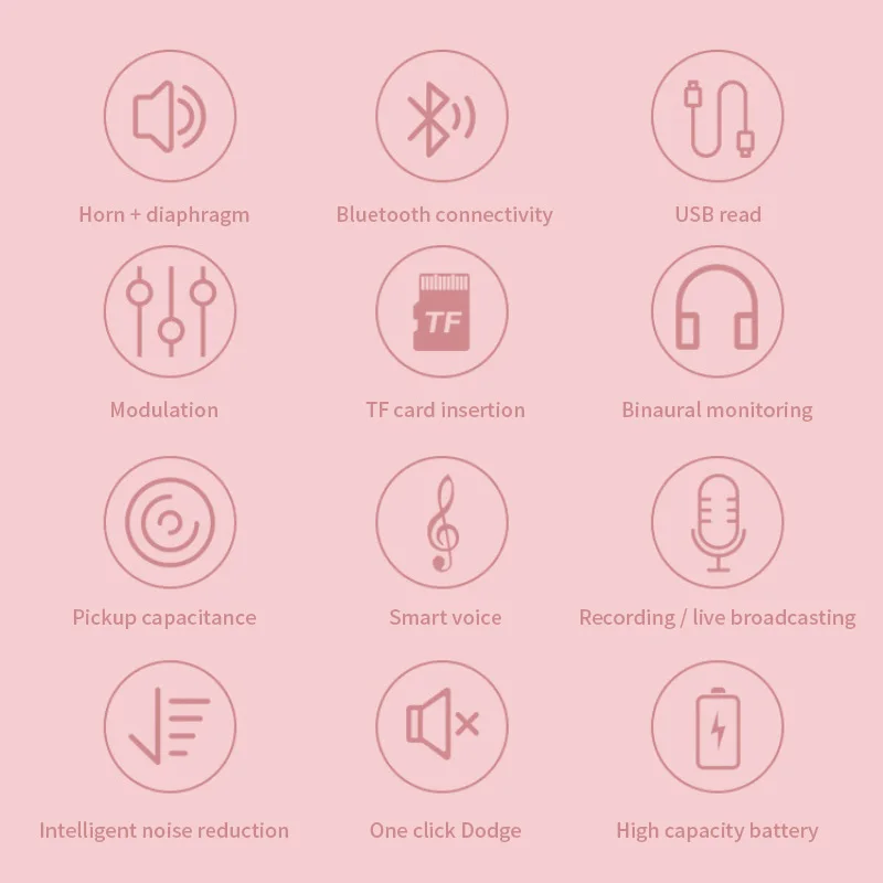2. Интеллектуальное шумоподавление, создание потрясающей живой среды KTV и прекрасной реверберации эха. Это волшебный микрофон для изменения голоса. Есть пять звуковых режимов: оригинальный звук, детский голос, женский голос, мужской голос. Это может быть веселее.