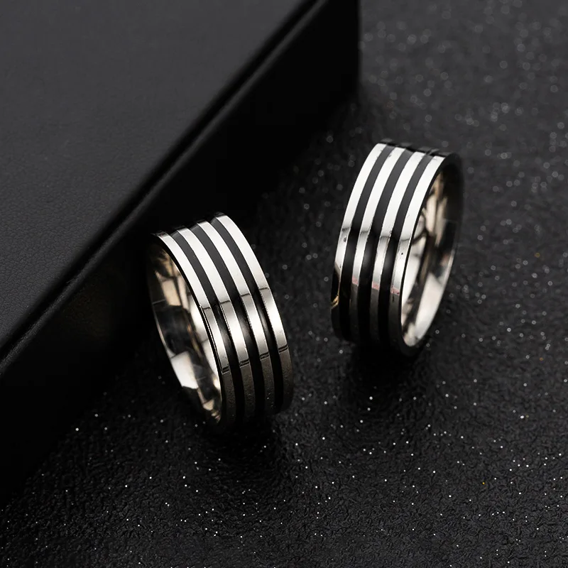 SHOUMAN простые парные кольца из нержавеющей стали с черной линией ...