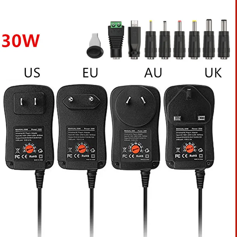 Универсальный адаптер питания 30 Вт для СШАВеликобританииАвстралииЕС, 3 В постоянного тока, 4,5 в, 5 В, 6 в, 7,5 в, 9 В, 12 В постоянного тока, преобразователь зарядного устройства + 5 В, а, USB-порт с 8 шт. разъемов
