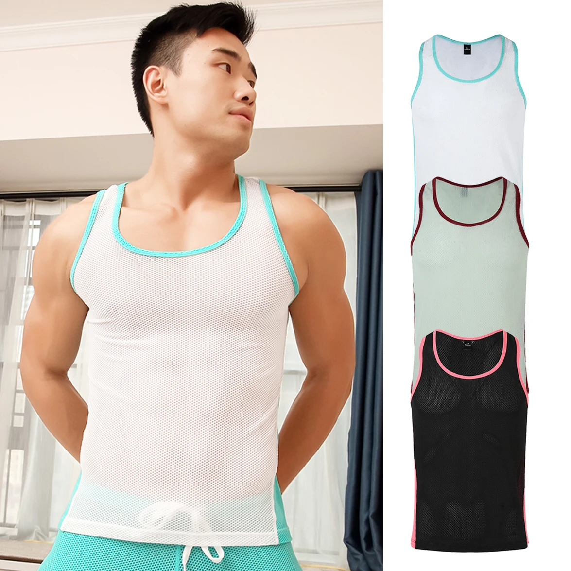 Летние мужские сетчатые майки без рукавов, однотонные мужские спорт...
