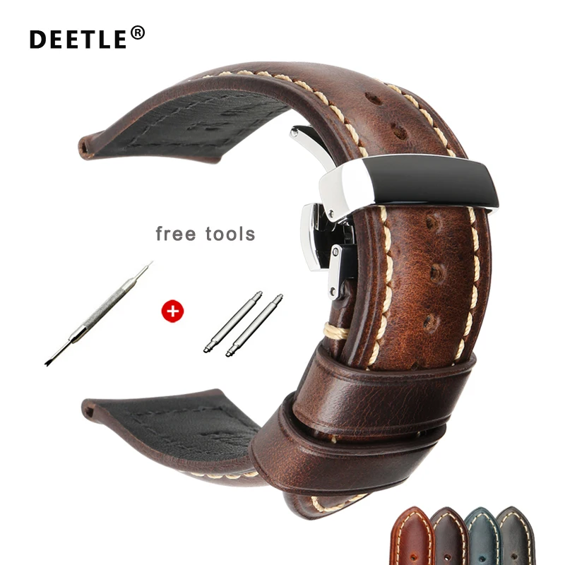 Ремешок из натуральной воловьей кожи для мужских и женских часов, браслет для смарт-часов, 20 мм 22 мм, Синий Черный Коричневый, 18-26 мм