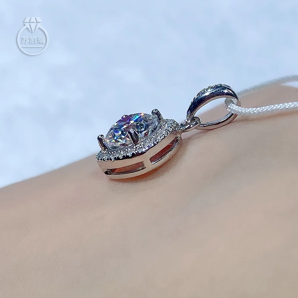 Настоящее D Цвет VVS Муассанит Кулон 1CT 2CT Модное лабораторное бриллиантовое ожерелье 18 К белое золото покрытие 925 серебро для женщин