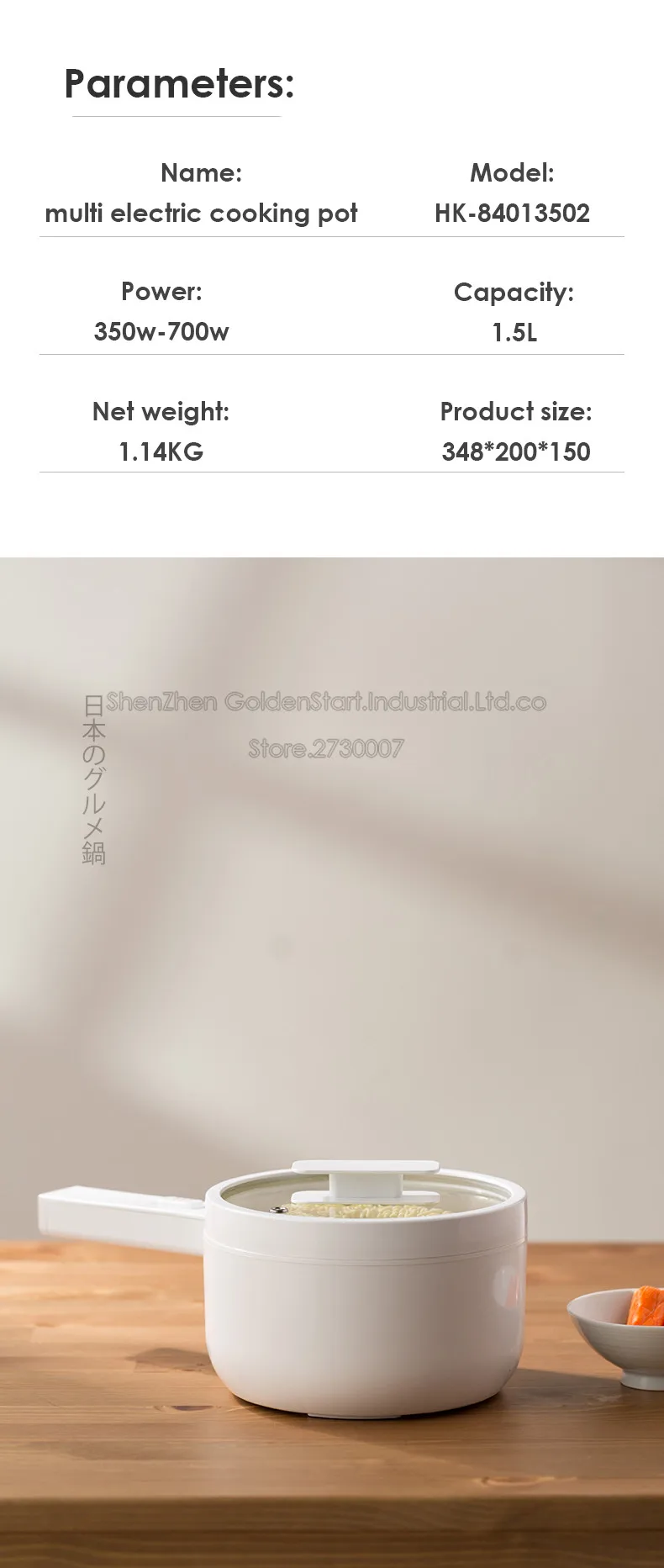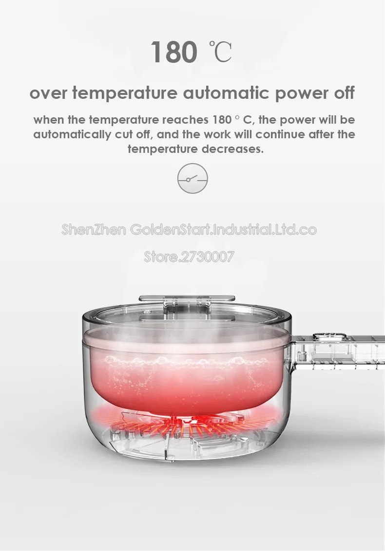 ● Многофункциональный, можно жарить, приготовить, приготовить кашу, приготовить на пару, большой диаметр 20 см, легче Готовить;● Емкость 1,5 л;● Два уровня огневой мощи, безопасная мощность 350-700 Вт, автоматическое отключение, когда температура превышает 180 ℃;●Керамическая подкладка для глазури, отпариватель из пищевого полипропилена, антипригарный, без запаха, без деформации.