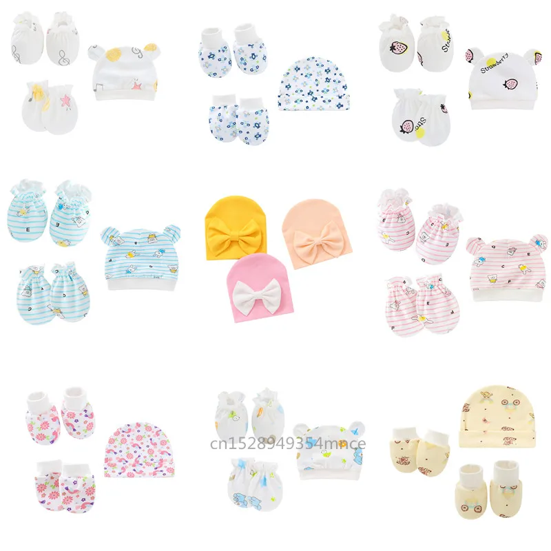 Детские перчатки с героями мультфильмов, шапка, чехол для ног, Хлопковые варежки, шапочка, Комплект носков, перчатки для новорожденных