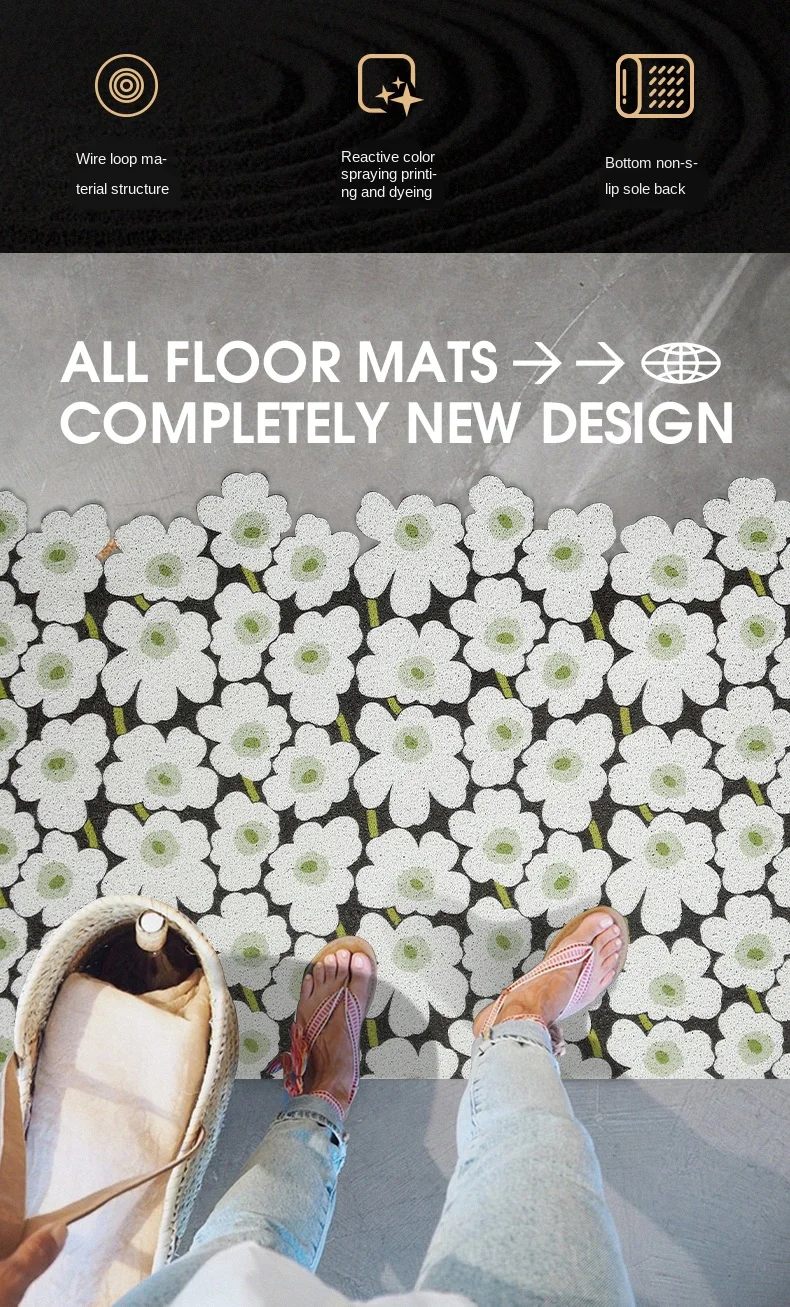 > Дверной коврик из ПВХ с шелковой петлей изготовлен из экологически чистого и безвредного материала.> Толщина дверного коврика составляет около 8 мм, он может полностью лежать на полу и не препятствует открыванию и закрытию двери.> Его можно свободно разрезать на любые формы, которые вы хотите, и подходит для внутреннего и наружного входа, прихожей, фойе и т. д.> Нижняя часть дверного коврика изготовлена из нескользящего материала, чтобы предотвратить скольжение дверного коврика и защитить вашу безопасность.> Материал выше может поглощать влагу от обуви, чтобы сделать полы чистыми и сухими, а также удалять пыль, грязь, снег и т. д.> Когда коврик заполнен частицами грязи, вы можете просто очистить его с помощью пылесоса, или вы можете использовать садовый шланг в краску, затем дайте дверному коврику полностью высохнуть на воздухе перед следующим использованием.> Наш коврик может быть настроен в соответствии с размером дверного входа, пожалуйста, свяжитесь с нами, если вам нужно настроить.