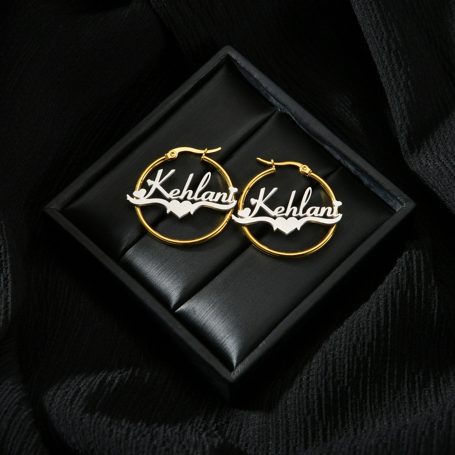 Серьги-кольца Женские Двухцветные, ювелирные украшения для ушей под заказ в стиле аниме, с именем, буквой, номером, 2 цвета