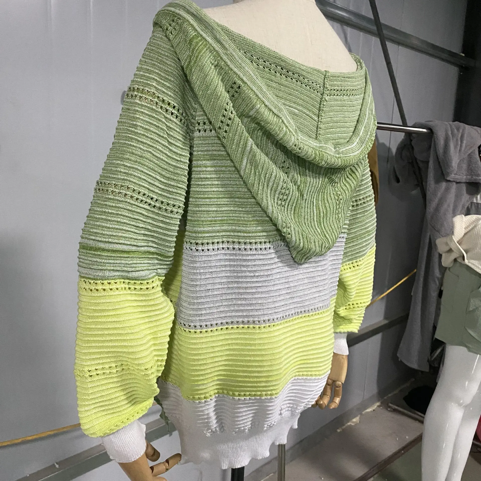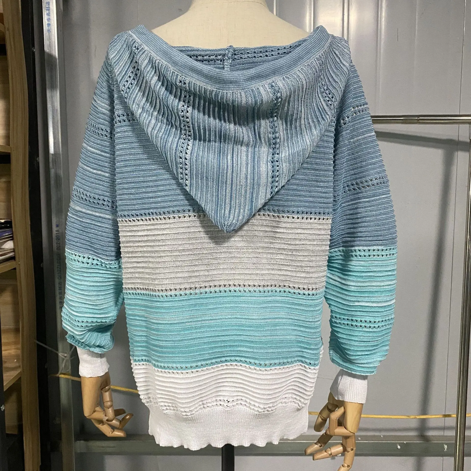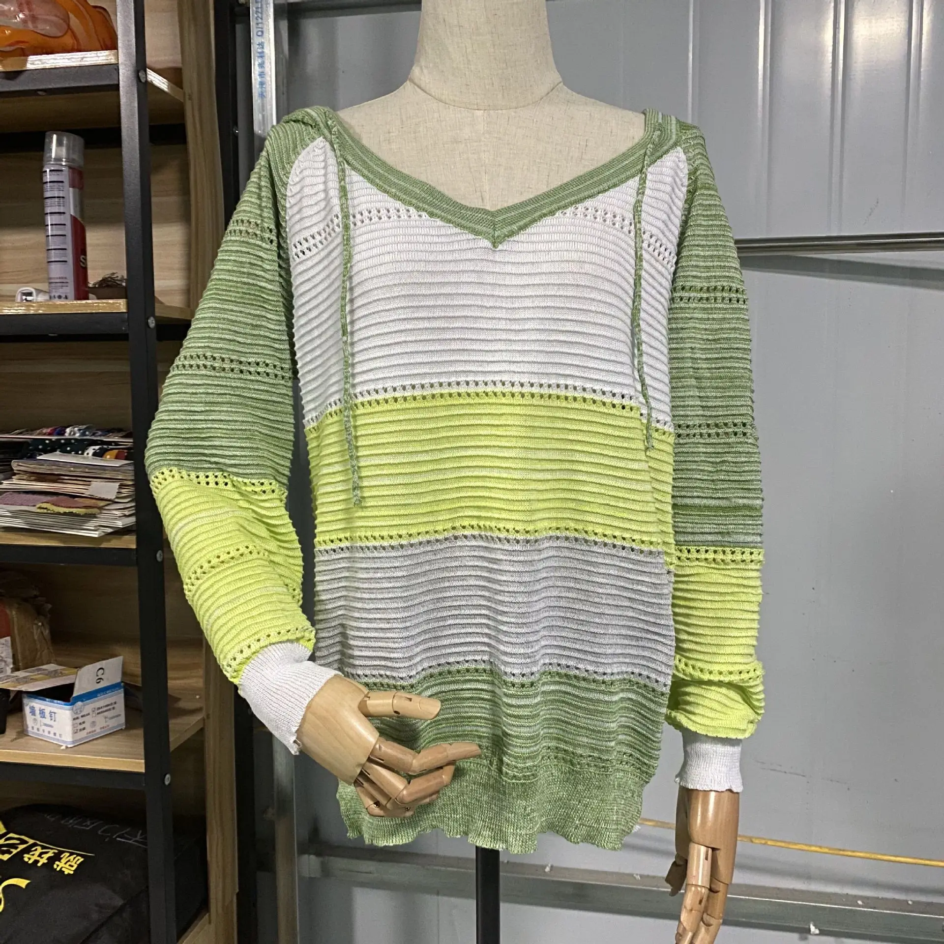 Женский вязаный свитер с капюшоном, повседневный Полосатый пуловер ...