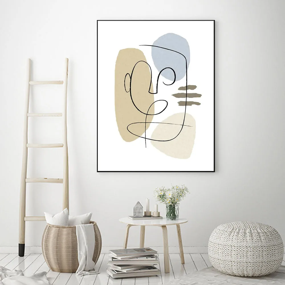 Скандинавские простые настенные картины, рисунок на холсте, линия, лицо, цветок, абстрактная картина, плакаты в скандинавском стиле и принты для гостиной, без рамки