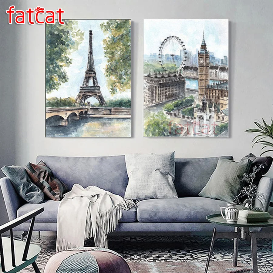 FATCAT абстрактные башни и колокольней для пейзаж diy 5d алмазная живопись камни в форме ромба круглый дрель Алмазная вышивка AE2651