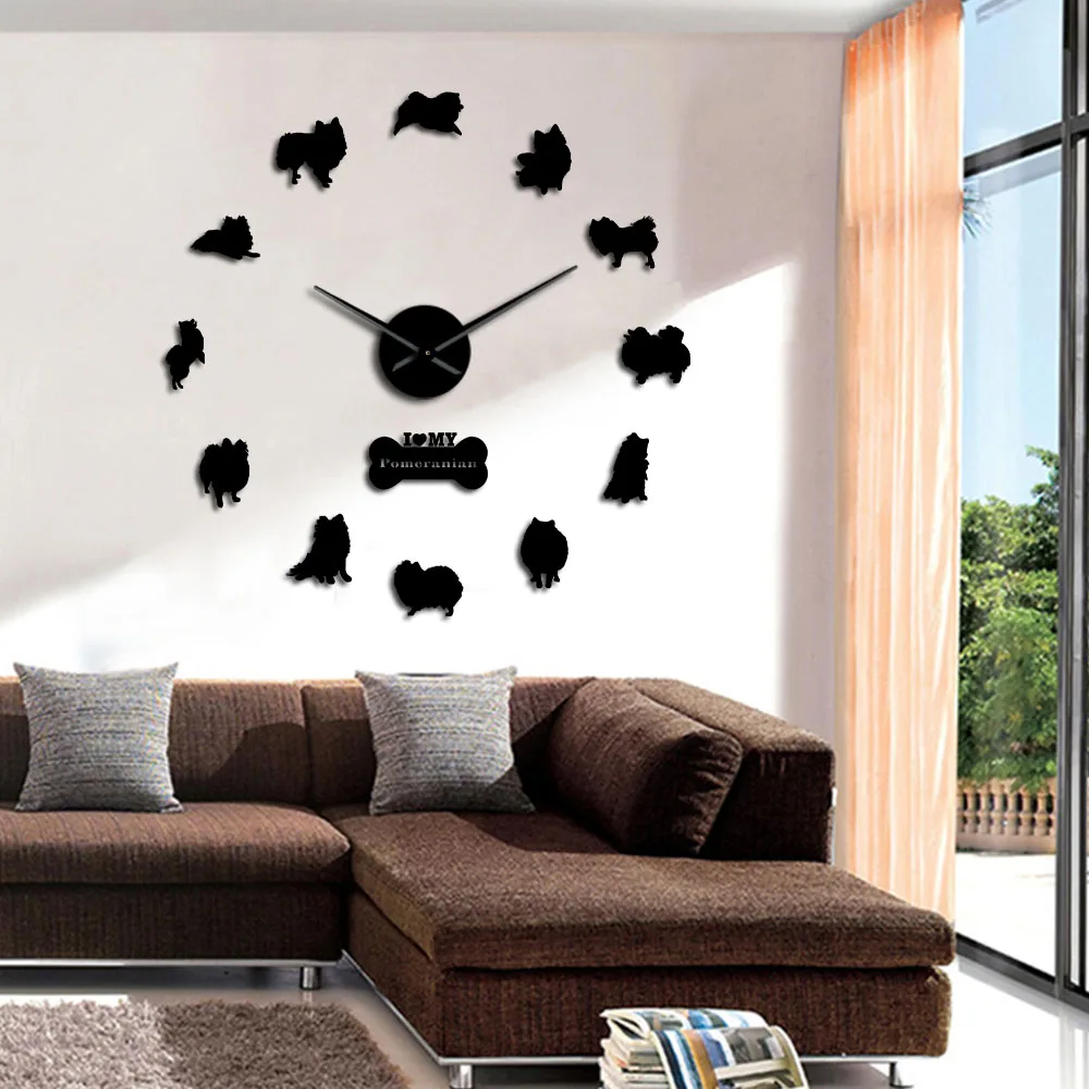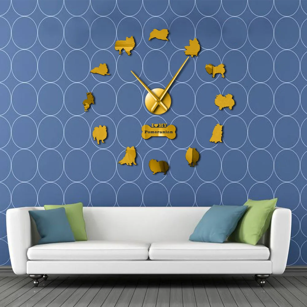 Настенные часы с изображением собаки, померанского шпица, Deutscher Spitz, настенные часы сделай сам, большие акриловые часы с зеркальным эффектом и большой иглой