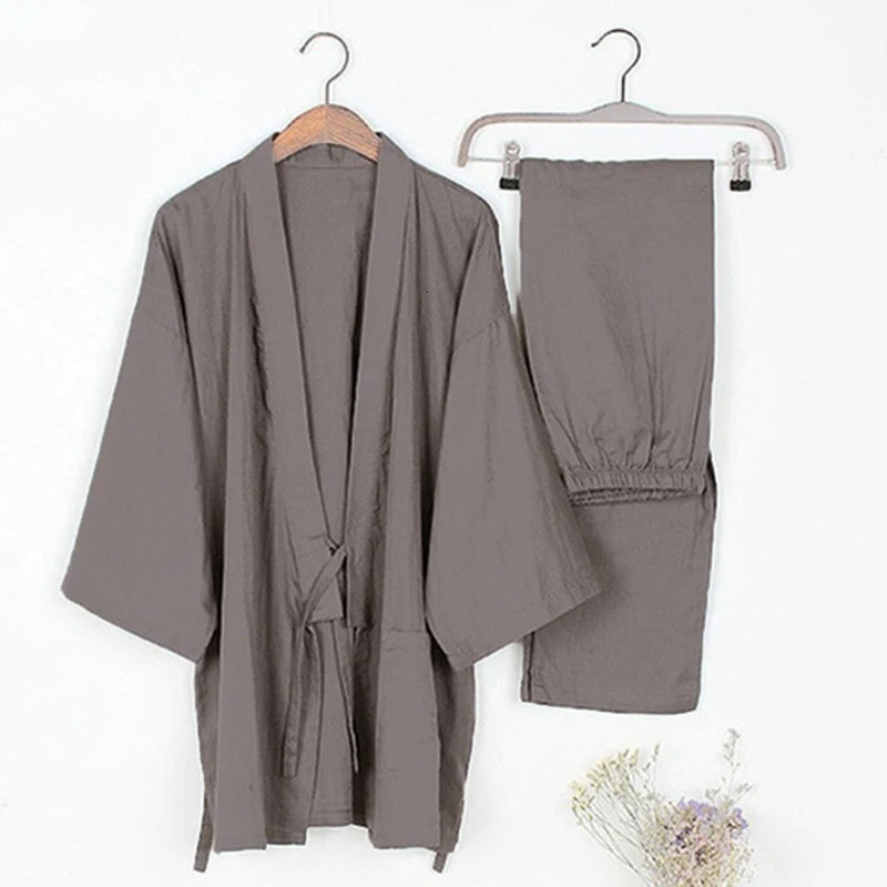 Комплект одежды для влюбленных из 2 предметов в японском стиле, кимоно с милым принтом, юката, хлопковая Паровая Пижама, мужской халат, ночная рубашка