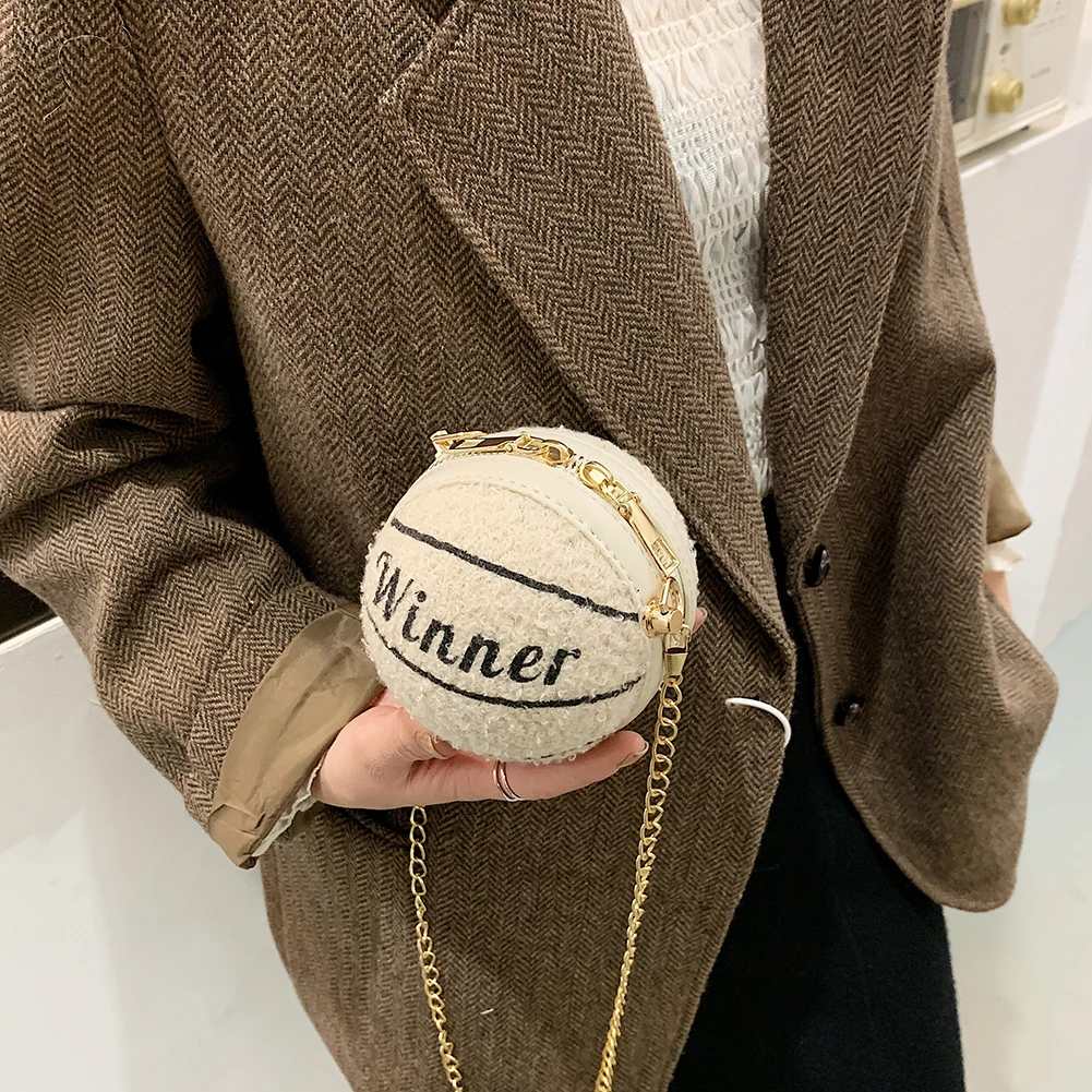 Модный клатч на плечо в форме шара для женщин, плюшевая женская сумка через плечо с цепочкой, дамские сумки на плечо