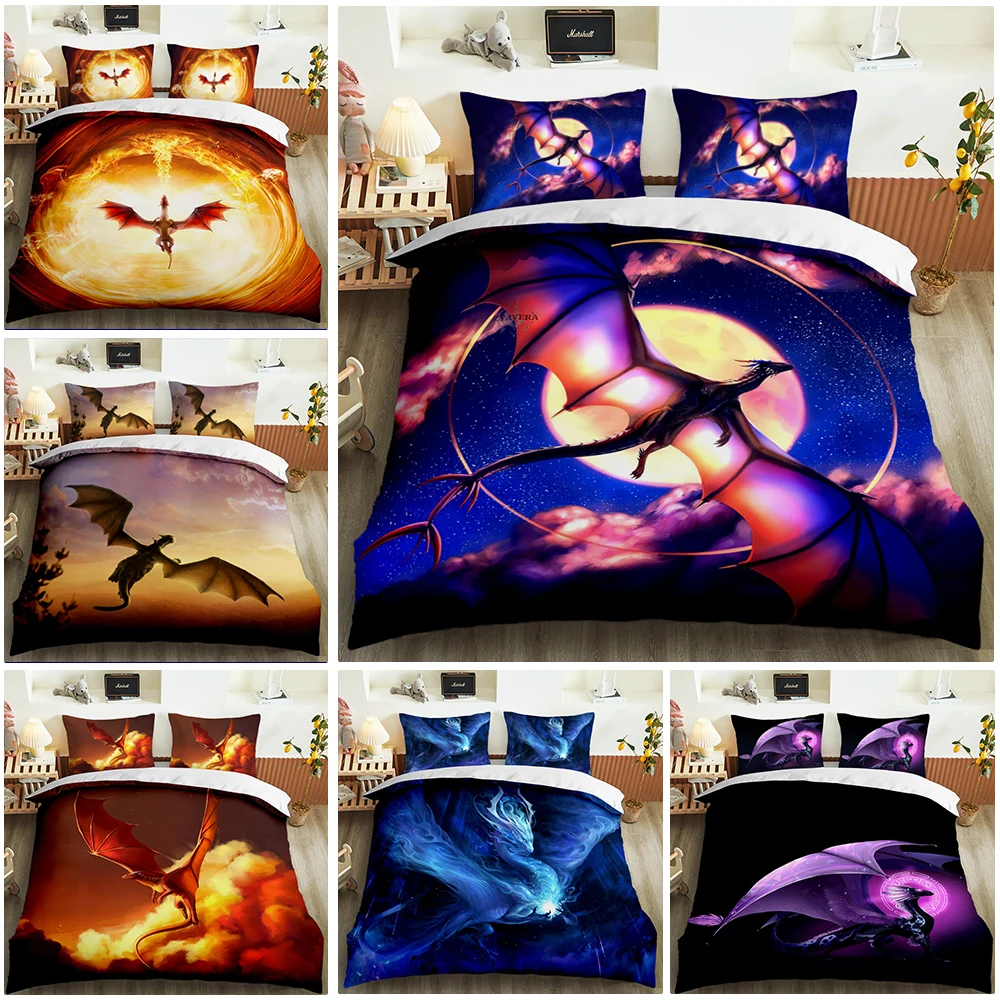 Дракон пододеяльник постельное белье головка сердитых покрывала 3D печати постельное белье для взрослых и детей Для мальчиков-подростков Комплект постельного белья Королева; Прямая поставка
