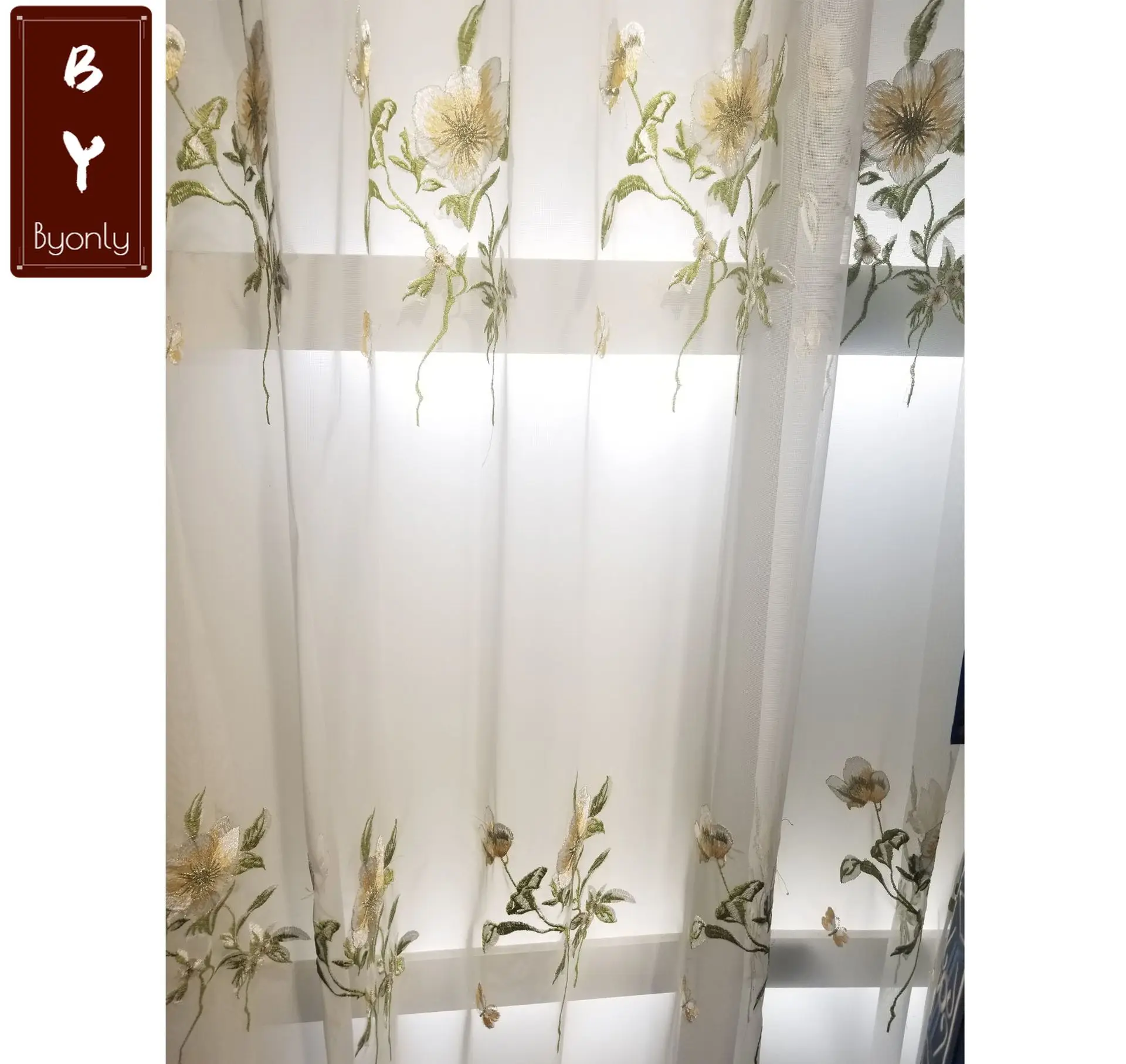 Тюль для окна, деревенский цвет, вышивка, тюль для окна для гостино...