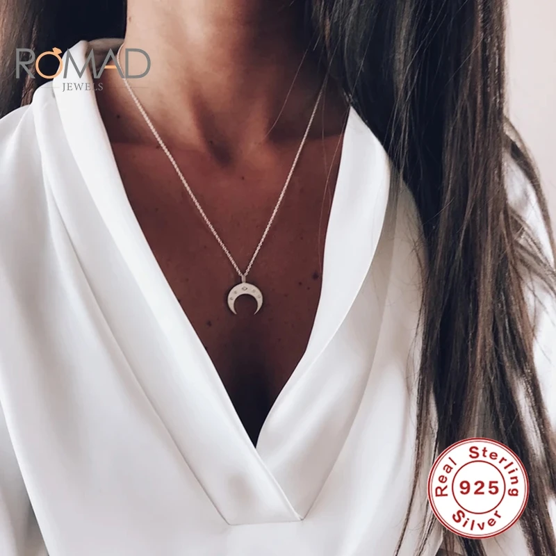 ROMAD Настоящее серебро 925 пробы ожерелье подвеска цепочка Joyero 18K полумесяц бриллиантовое ожерелье для женщин инкрустированные ювелирные изделия
