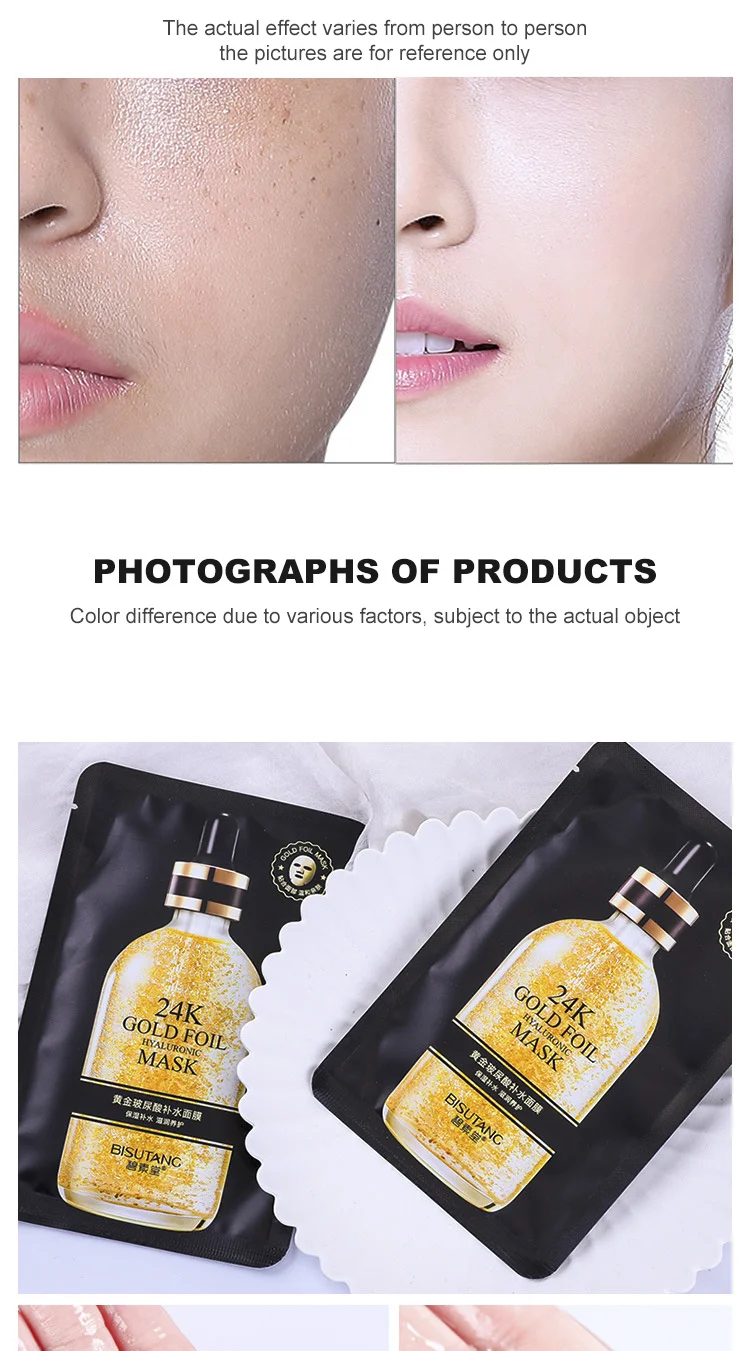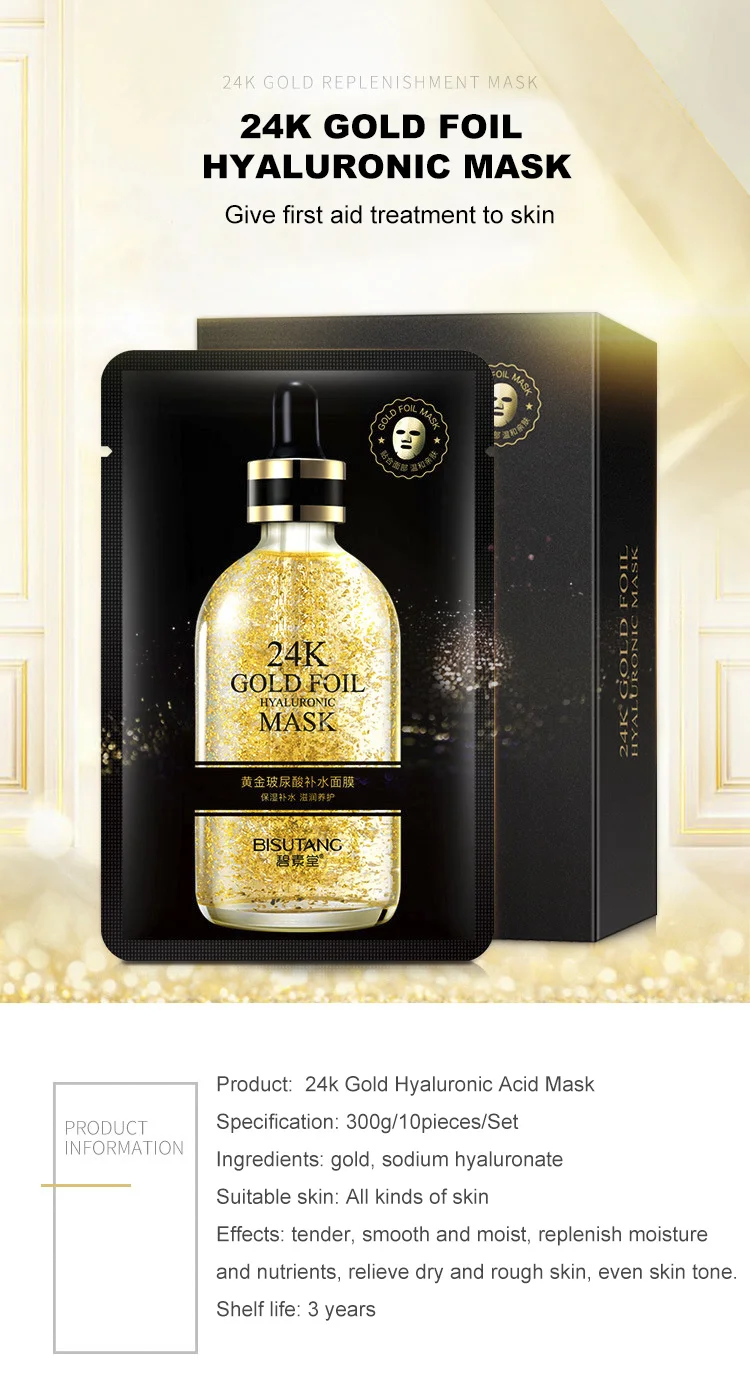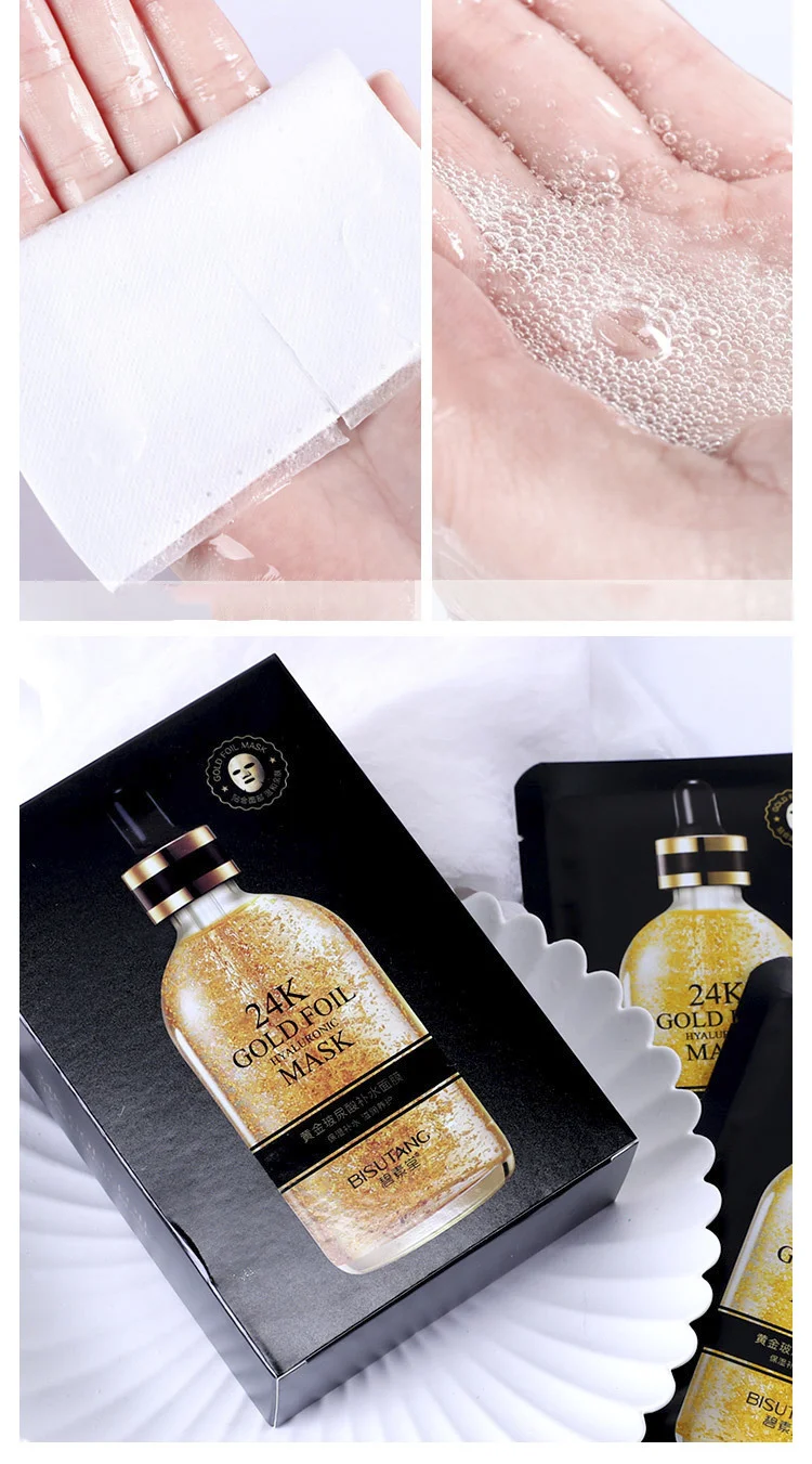 Увлажняющая маска для лица, с гиалуроновой кислотой, золото 24 К, увлажняющая, подтягивающая, осветляющая, против морщин и ухода за кожей, 10 штук