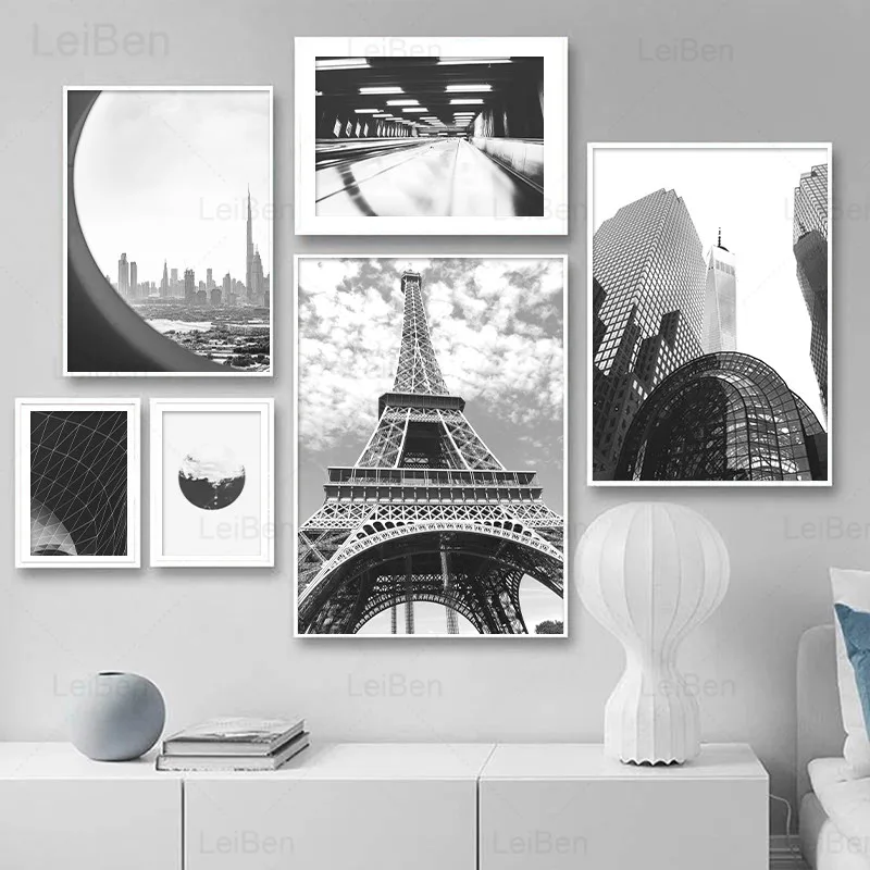 Европейский пейзаж, городская архитектура, Эйфелева башня, холст, живопись, украшение для дома, настенное искусство, черные и белые модные картины, постеры