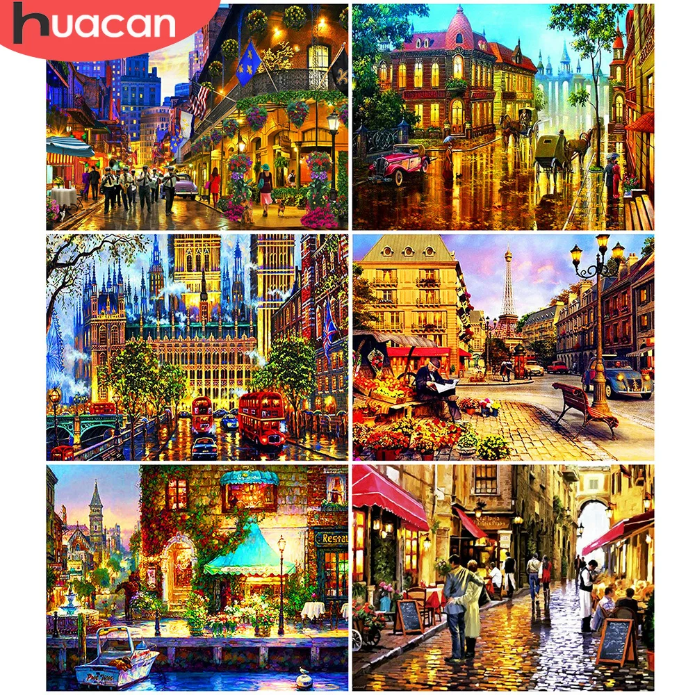 Алмазная живопись HUACAN сделай сам, вышивка крестиком, уличная полноформатная картина стразы, 5D мозаика, украшение для дома