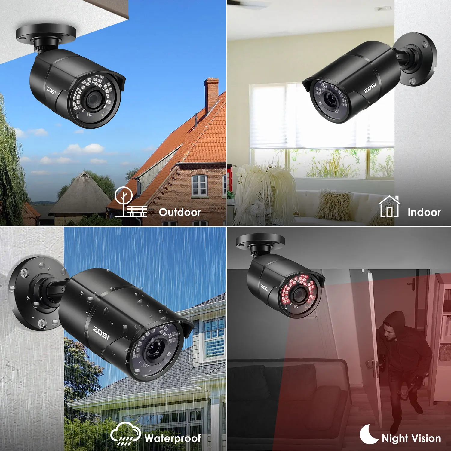 Камера видеонаблюдения ZOSI 2 МП Full HD, сильная ИК-камера с ночным видением H265, 1080P, TVI, уличная и комнатная система видеонаблюдения, погодозащищенная, IP67