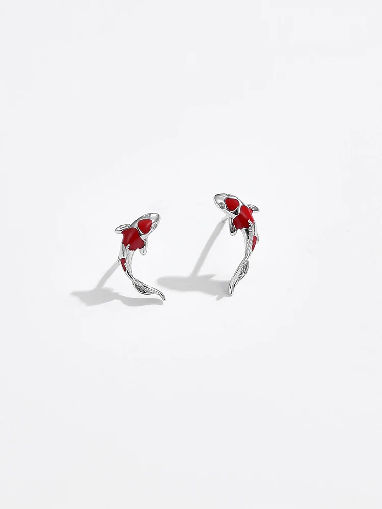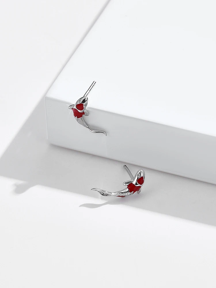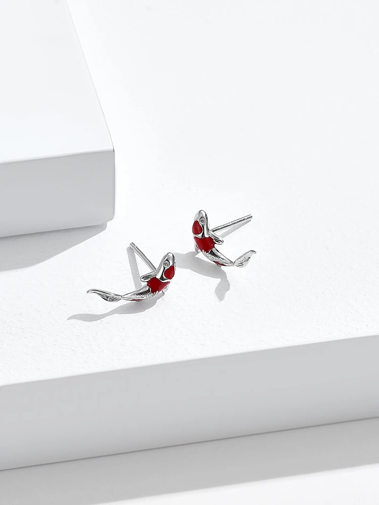 Женские серьги-гвоздики из серебра 925 пробы с красной эмалью