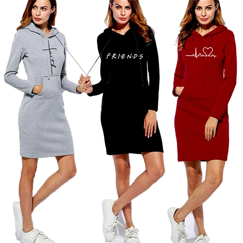 Осенне-зимние женские толстовки, свитшоты, платье с длинным рукавом, платья, женская одежда, пуловеры с капюшоном и карманами на завязках