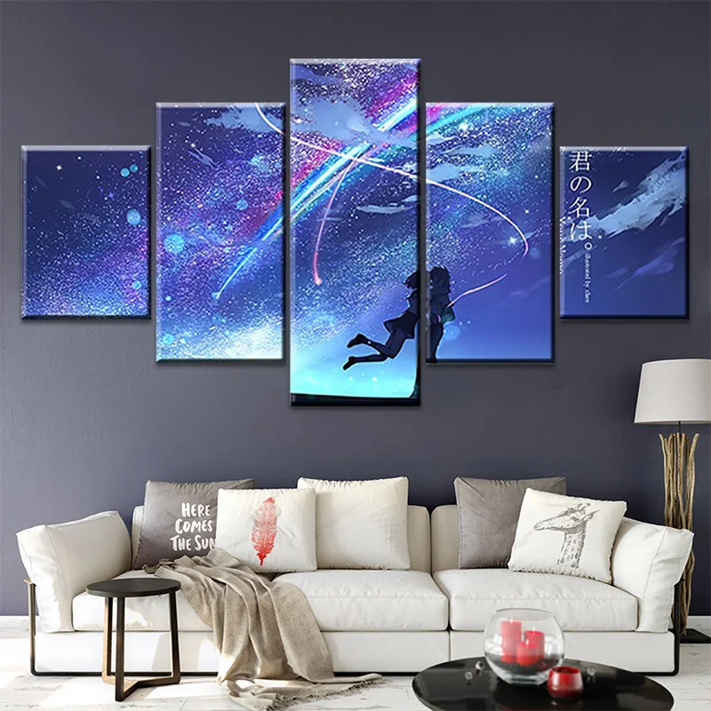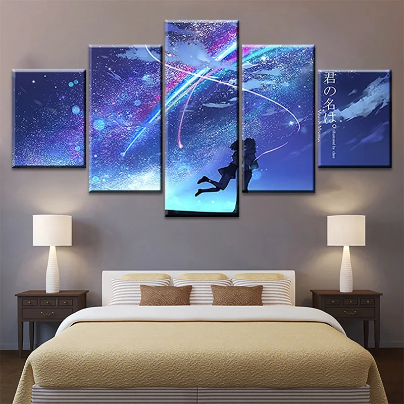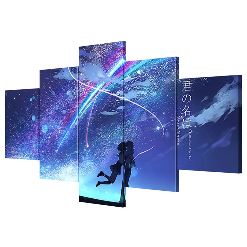 Декоративные плакаты для дома, декоративная рамка для гостиной, 5 панелей, аниме с вашим именем, современная живопись на холсте, настенные картины с HD-печатью
