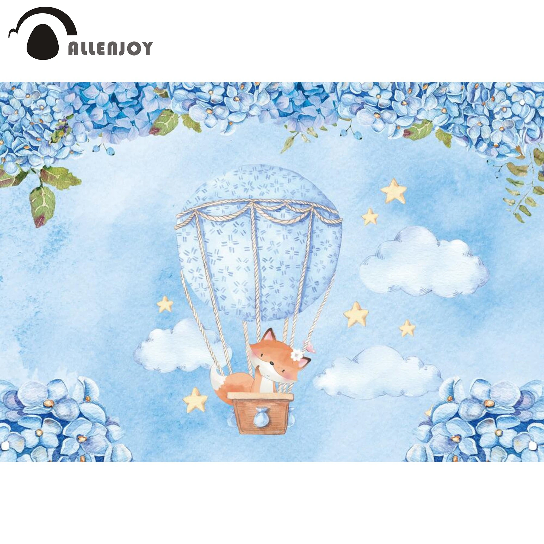 Фотофон Allenjoy с изображением воздушных шаров лисы синих цветов акварельных облаков для детского дня рождения