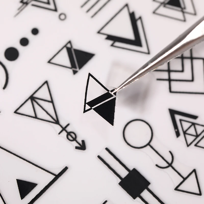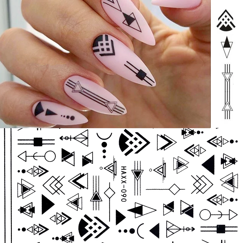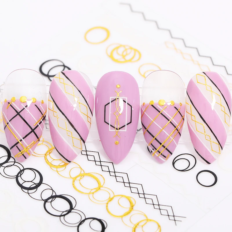 Золотые черные 3D наклейки для ногтей, полосатые линии, геометрические узоры, клейкие переводные наклейки, украшения для ногтевого дизайна, сделай сам, дизайнерские аксессуары