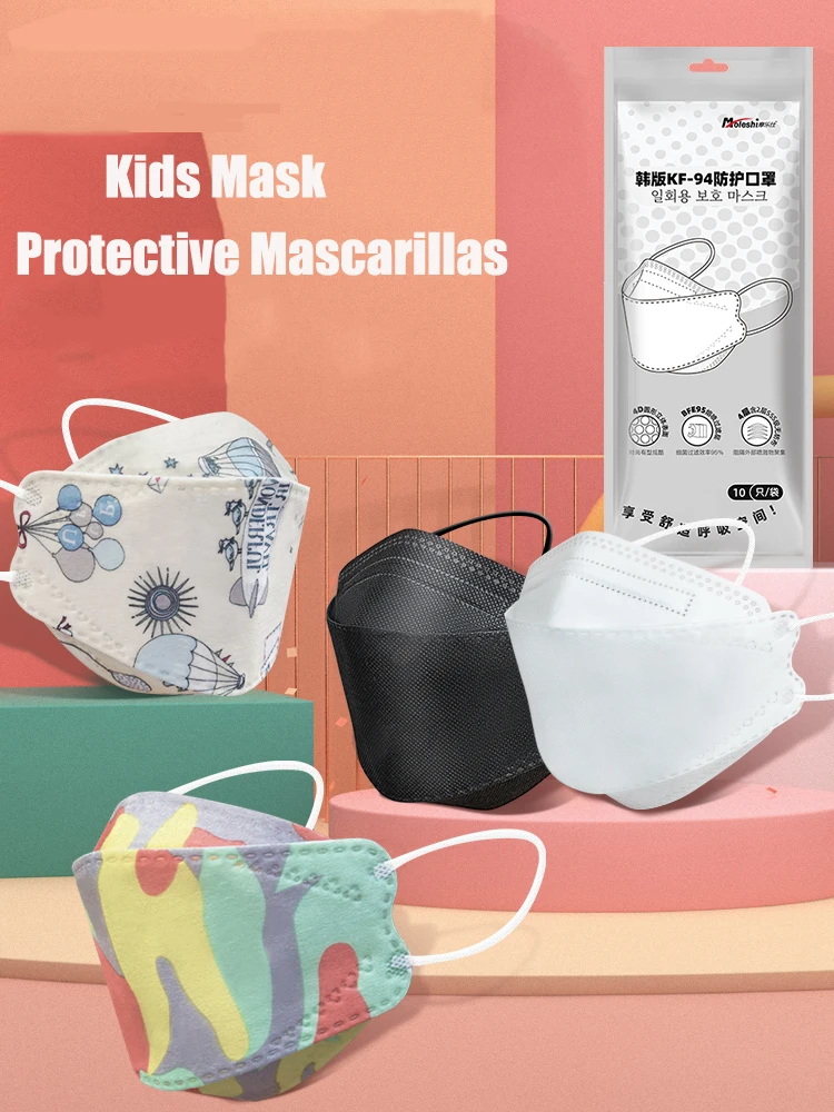 Детская 3D маска для лица KN95, маски в форме рыбы, детский 4-слойный фильтр, защитный респиратор, сертификация CE, одноразовые маски