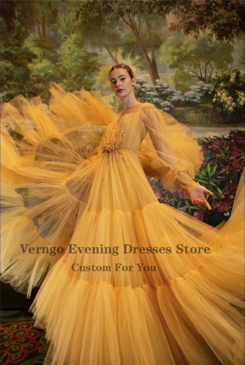 Женское вечернее платье из фатина, с пышными рукавами, без бретелек, с хрустальными листьями и поясом, весна-лето 2021