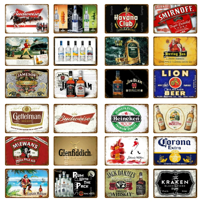 Металлический плакат для вина, пива, виски, металлические винтажные...