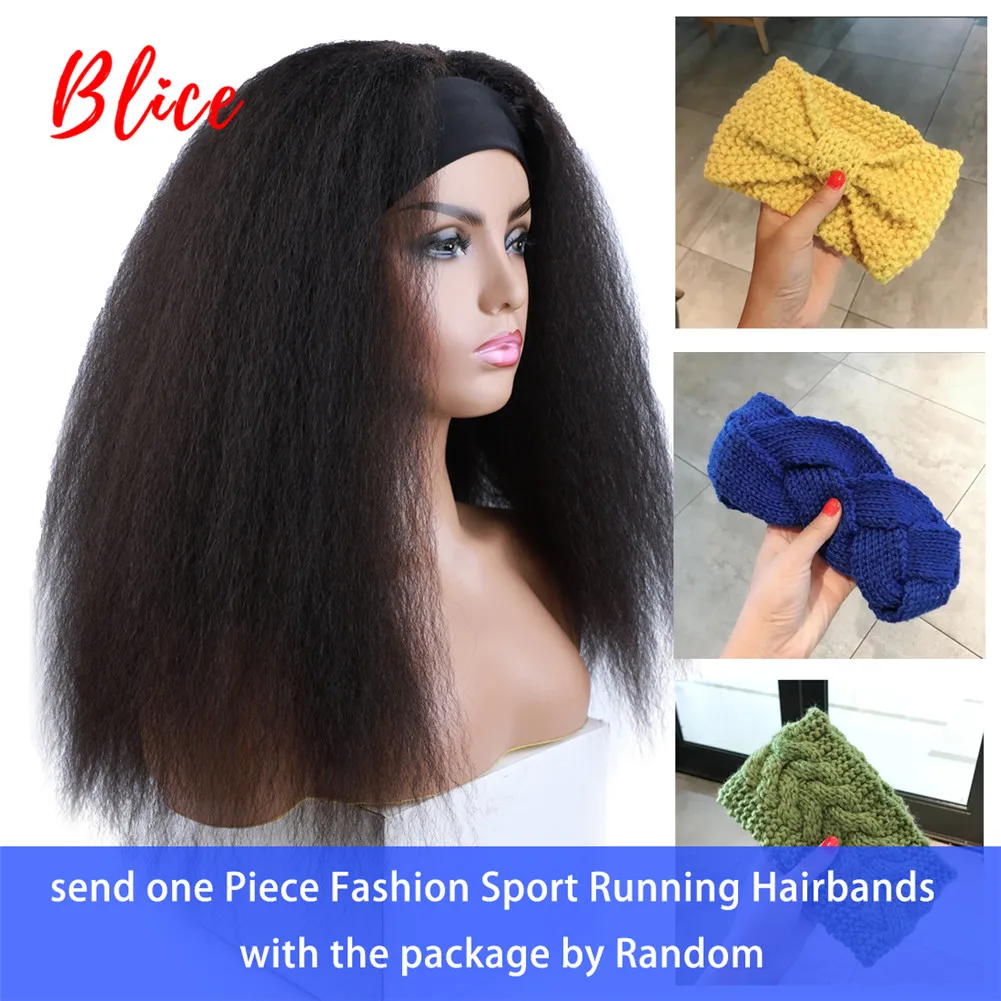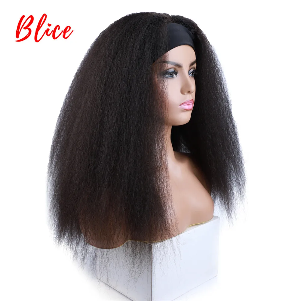 Blice длинная курчавая прямая повязка на голову синтетические волосы парики для афроамериканских женщин натуральный 18-22 дюймов Kanekalon афро полный парик