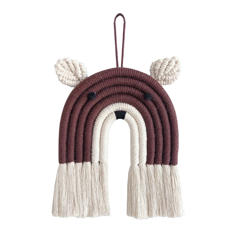 Скандинавский Тканый гобелен из макраме, хлопковая веревка, радуга, животное, медведь, настенный подвесной кулон, украшение для детской комнаты