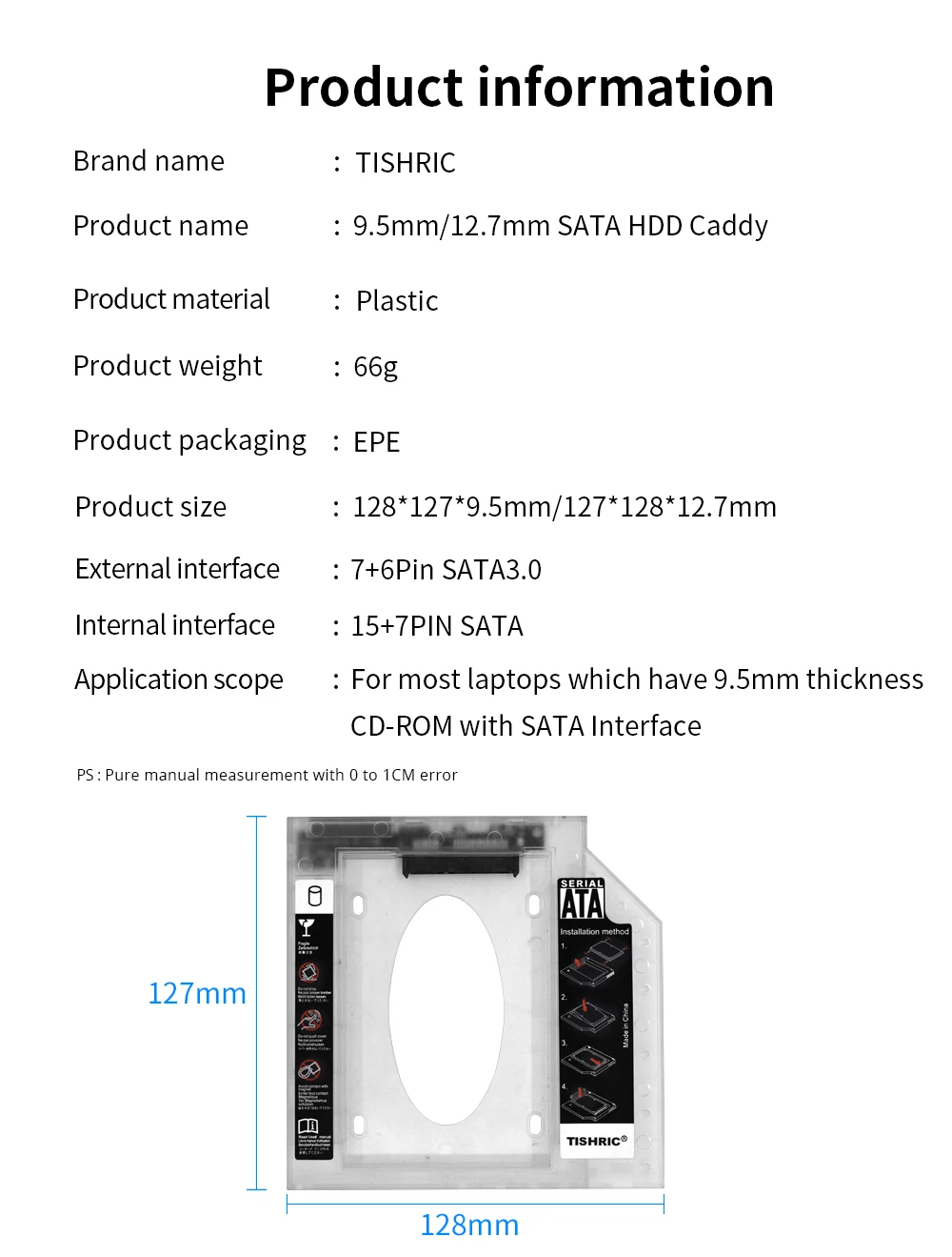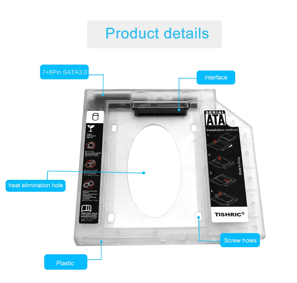 TISHRIC Пластик 9,5 12,7 мм HDD Caddy SATA 3,0 Optibay 2,5 ''Корпус...