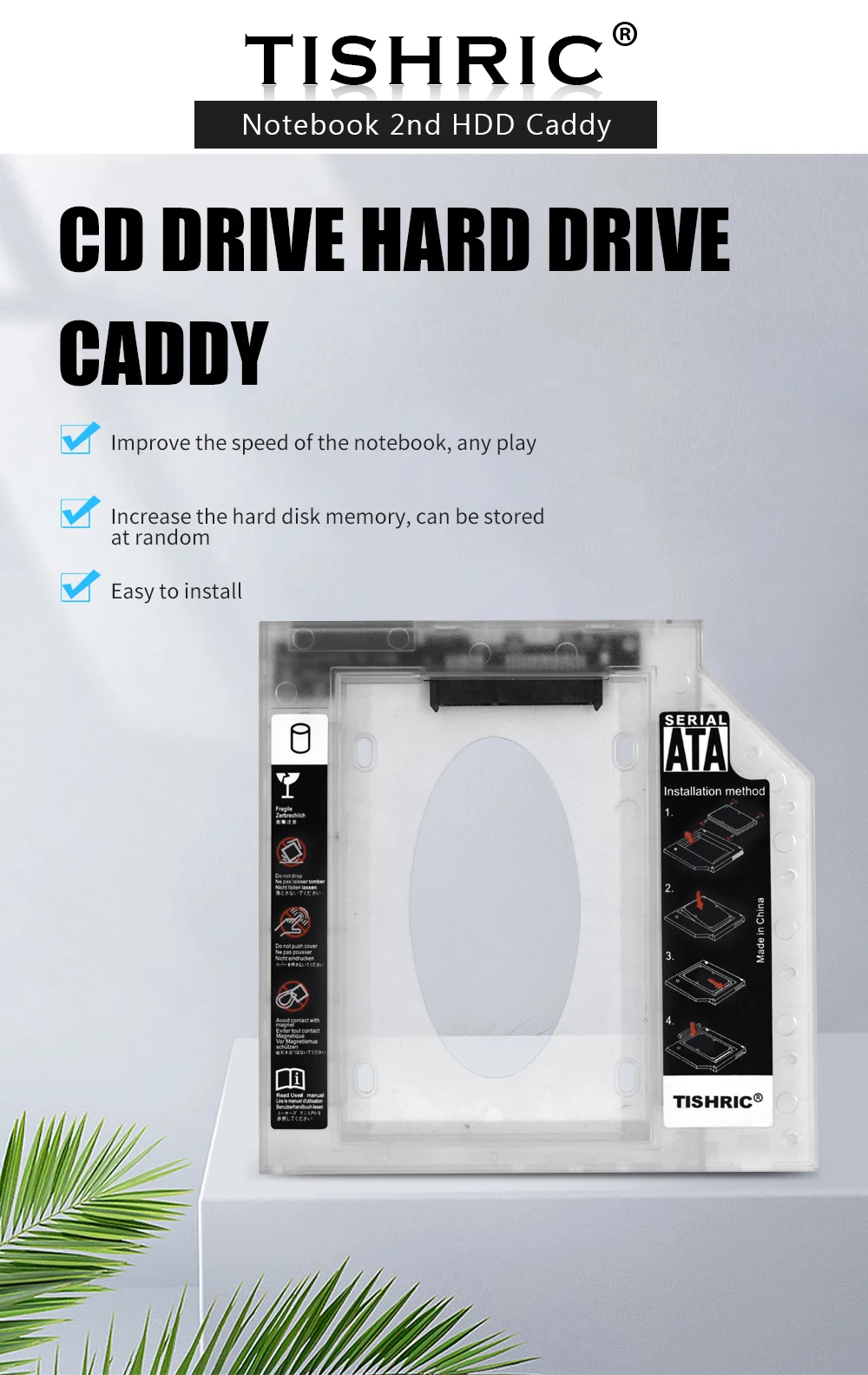 TISHRIC 2nd Hdd Caddy SSD 2,5 чехол жесткий диск для ноутбука CD-RO...