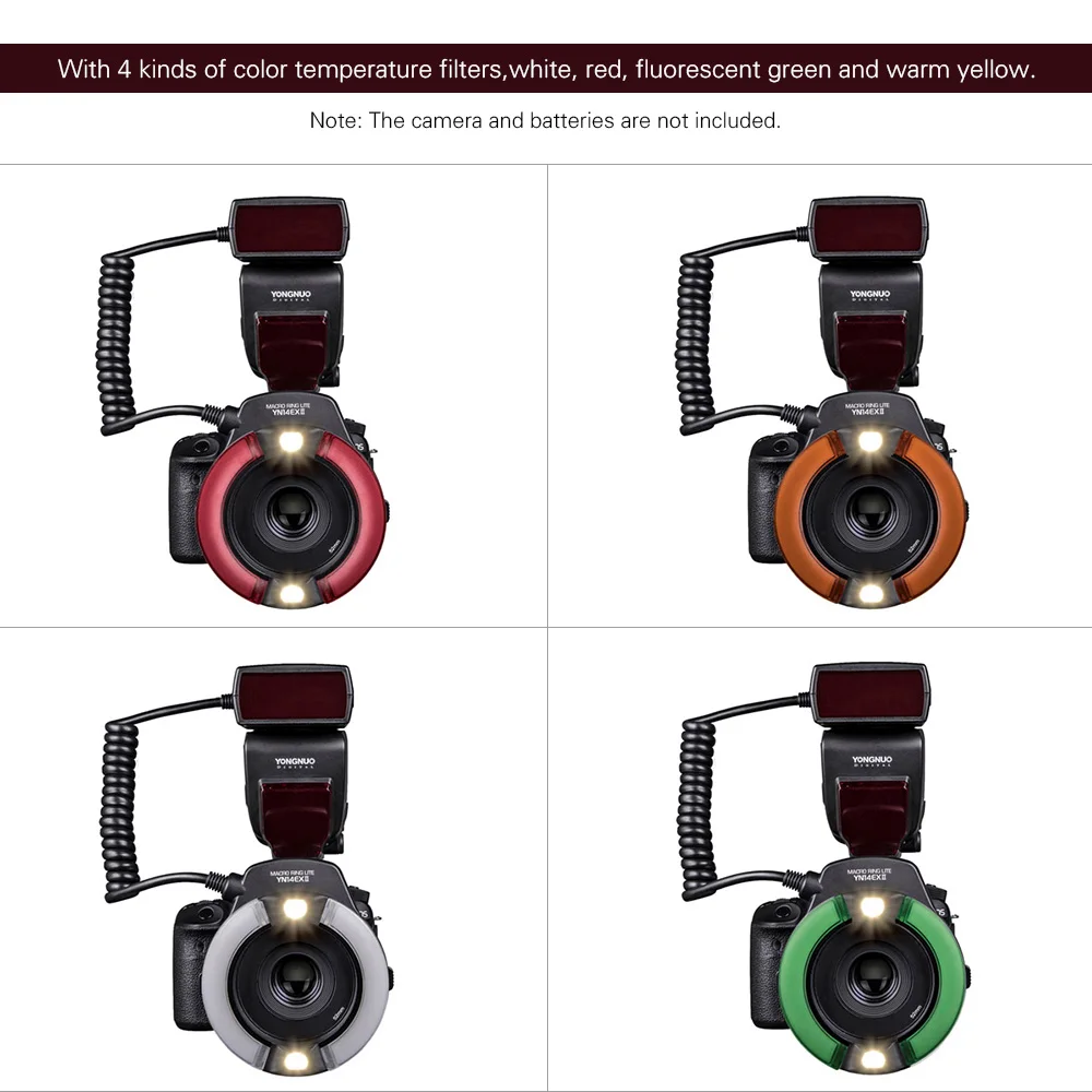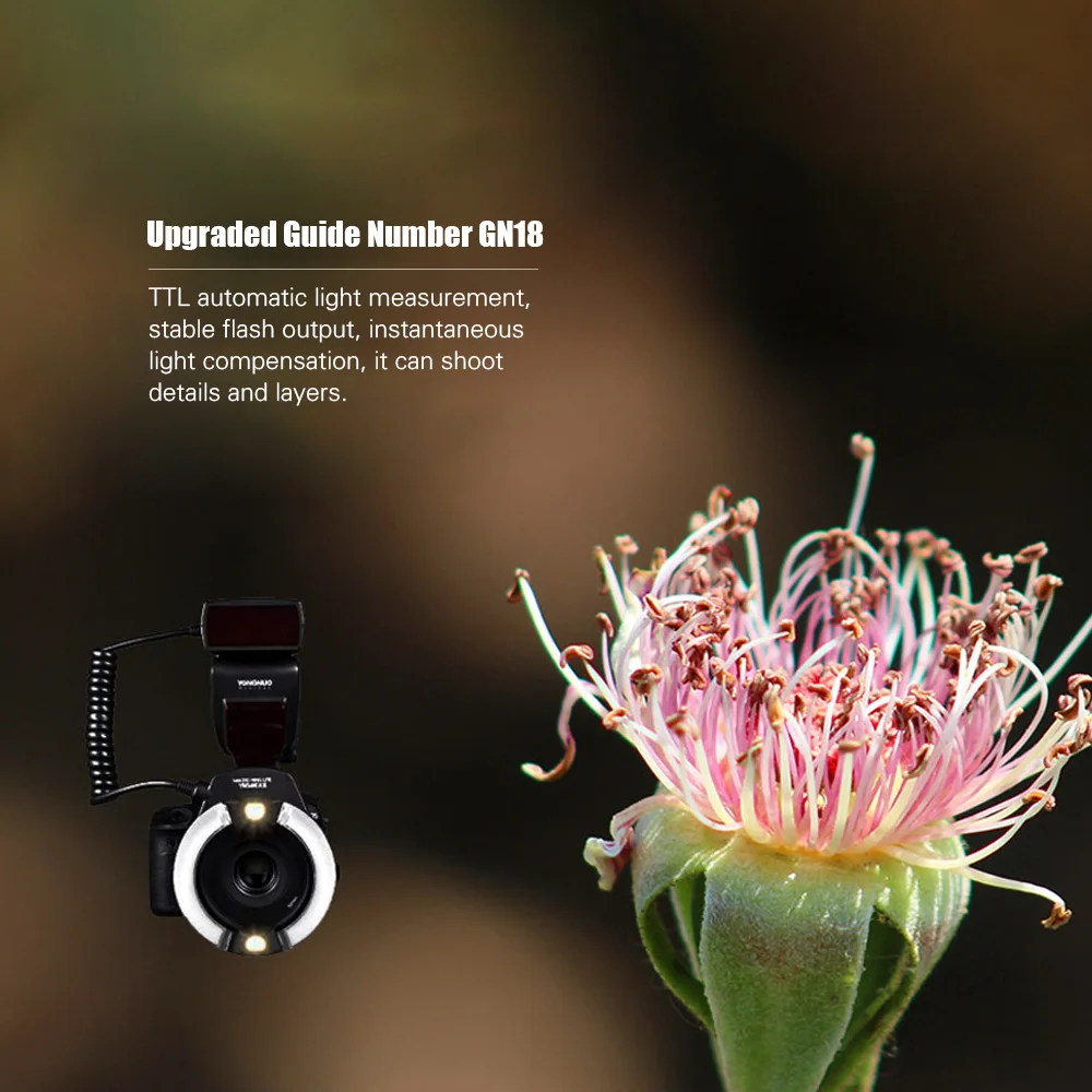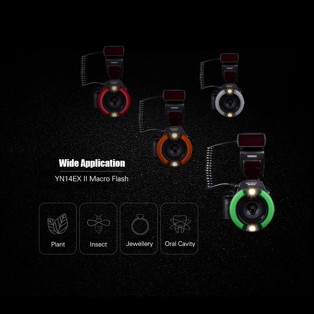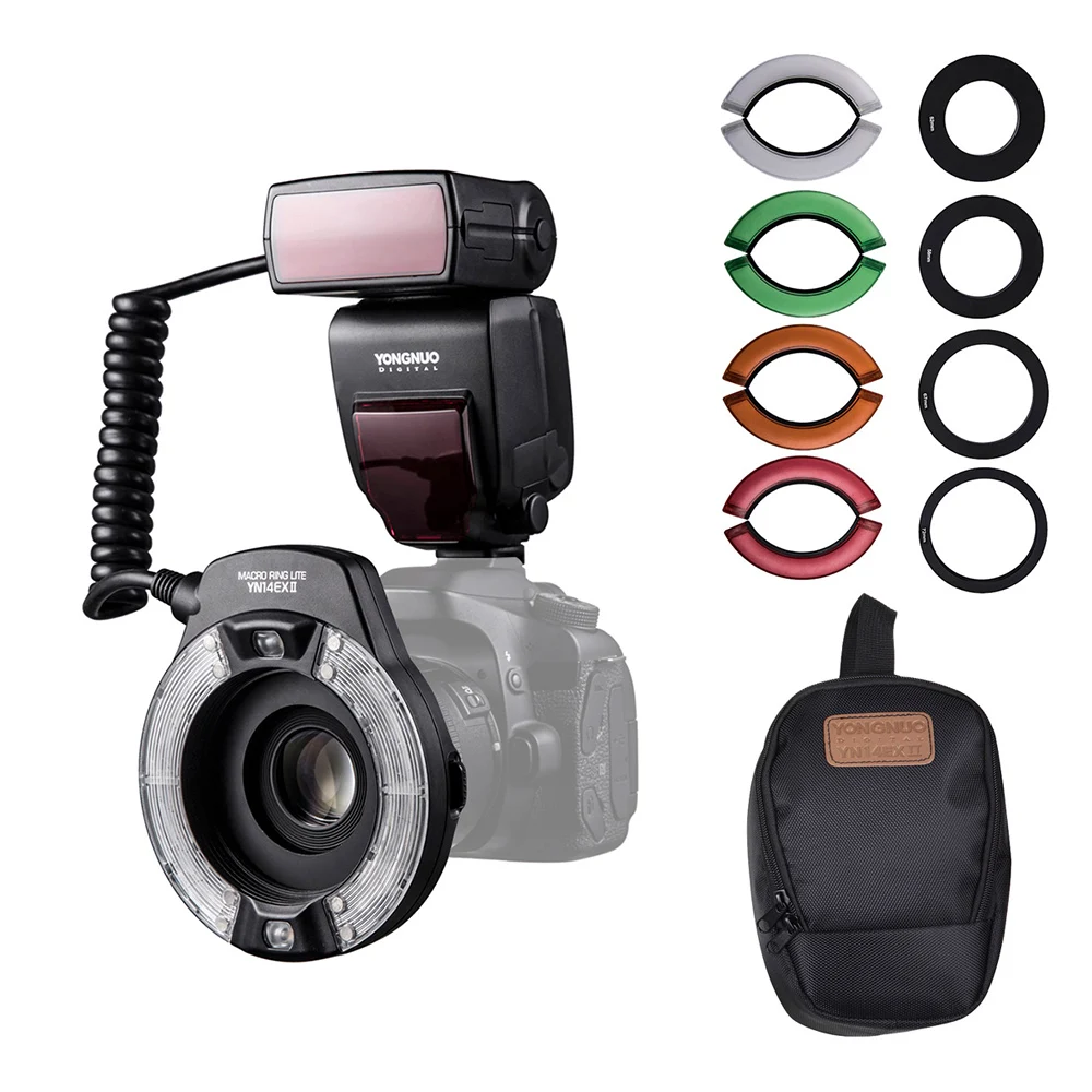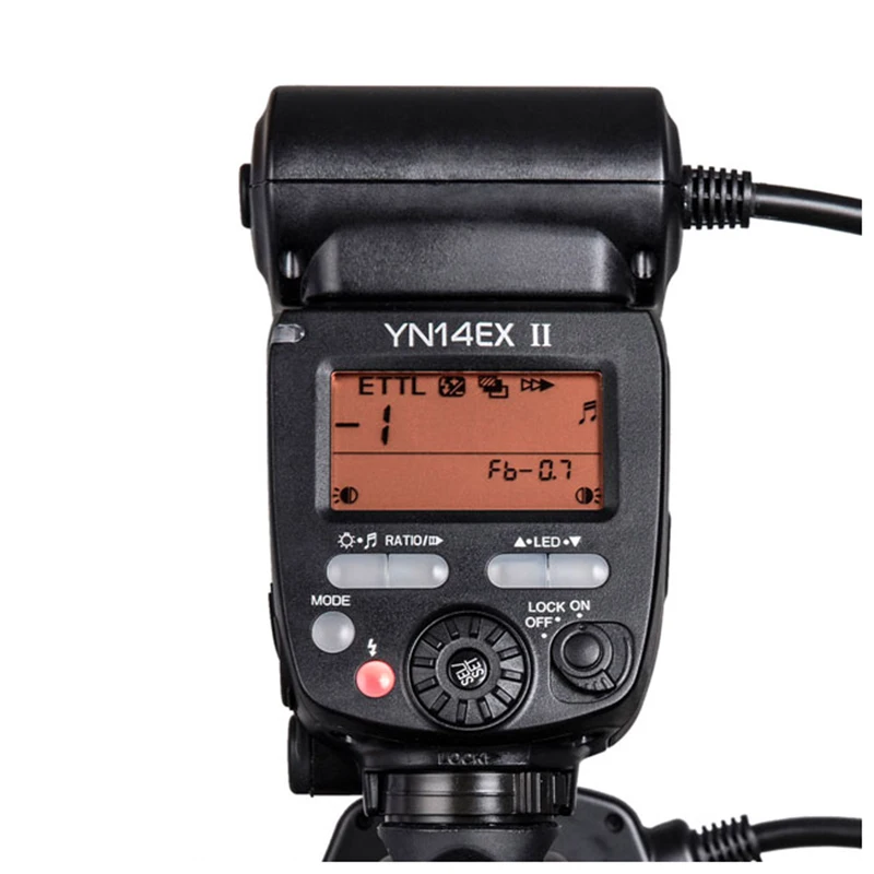 Особенности:Поддержка Вспышки M/TTL:Поддержка компенсации экспозиции, FEB, синхронизация задних штор, FE Lock, светильник моделирования, доступ меню к камере Canon.Макро-кольцевая двойная вспышка:Поддержка настройки коэффициента вспышки M/TTL, а вспышка A и B можно регулировать вместе или индивидуально, она может создавать тени на тему и делать фото с эффектом скульптуры.Большой ЖК-дисплей:Оснащен ЖК-дисплеем большого размера, который может быть более четким, более интуитивно понятным для просмотра и установки функции вспышки, удобен в использовании.Светодиодный светильник для фокусировки:Светодиодный светильник с высокой яркостью и фокусировкой легко фокусируется при темном освещении.С интерфейсом синхронизации ПК:YN14EX II оснащен стандартным синхронным интерфейсом ПК, что позволяет удобно использовать синхронную вспышку с помощью синхронной линии ПК.Поддержка объектива с несколькими размерами фильтра:Поддерживаемые Размеры линз 52 мм, 58 мм, 67 мм, 72 мм и т. д. (размер кольца адаптера 52 мм, 58 мм, 67 мм и 72 мм).Звуковая система подсказки:Включите функцию звуковой подсказки, различные режимы звука подействуют на различные условия работы, чтобы вы могли сконцентрироваться на творческом процессе. (Примечание: звук может быть выключен.)Высокоскоростная система рециркуляции:Время рециркуляции для полного выхода занимает всего 3 секунды, даже без использования новых батарей, вы можете получить очень быстрый опыт возврата тока, всего 4-5 секунд.Оснащен внешним разъемом питания:YN14EX II оснащен внешним разъемом питания, чтобы удовлетворить ваш более высокий спрос на время переработки и никогда не пропустите замечательный момент.Настройки автоматической экономии:YN14EX II может автоматически сохранить текущие рабочие настройки, чтобы вы могли продолжать использовать их после следующей загрузки.Профессиональные фильтры цветовой температуры:4 вида цветовых температурных фильтров, белый, красный, флуоресцентный зеленый и теплый желтый, метод поглощения магнитов для фильтров прост в использовании.Характеристики:Модель: YN14EX IIОсновной материал: пластикКонструкция цепи: изолированный биполярный транзисторРуководство №: 18 (ISO 100 в метрах)Покрытие вспышки: вверх и вниз около 80 °/влево и вправо около 80 °Контроль коэффициента вспышки: с точностью 1/2 EV в диапазоне 8:1-1:1-1:8.Режим вспышки: TTL, MПитание: 4 * щелочные батареи AA или никель-металлгидридные (никель-гидридные) батареи AA (аккумуляторы не входят в комплект).Время освещения: 200-2500 разВремя рециркуляции: около 3 секундЦветовая температура: 5600KУправление вспышкой: 8 уровней контроля яркости (1/128 ~ 1/1), 22 уровня тонкой настройкиВнешний интерфейс: горячий башмак, порт ПК, интерфейс зарядкиСовместимость: подходит для Canon 5DII, 5diii, 1DIV,5D,6D,7D,1D Mark IV,650D,600D,550D,500D/T1i,450d/Xsi,400D/Xti,350D,300D,1000D,1100D,1200D,70D,60D,40D,30D и т. Д.Размер блока управления: 175*105*160 ммРазмер вспышки: 135*123*26 ммПосылка Размеры: 14,8*11,7*22,8 см/5,8*4,6 * 9.0inВес посылка: 900 г/31,7 унцийПримечание:Камера и батареи в комплект не входят.Посылка:1 * кольцевая Макросъемка1 * защитный чехол4 * переходное кольцо4 * CT фильтры1 * Руководство пользователя (английский, китайский)