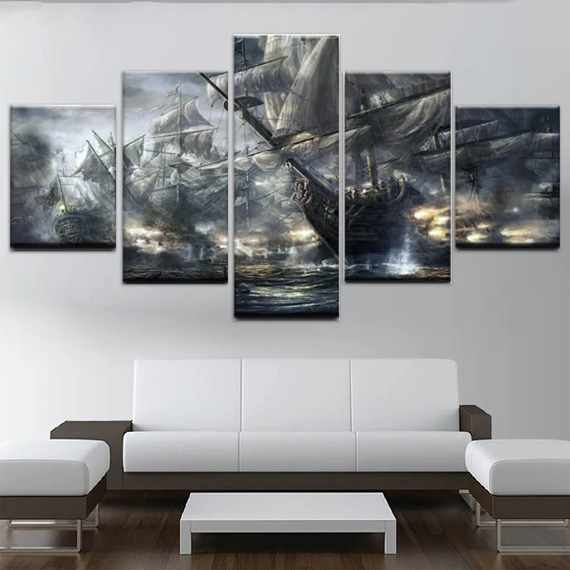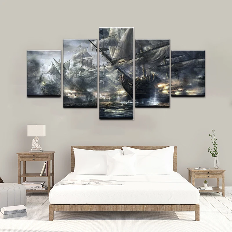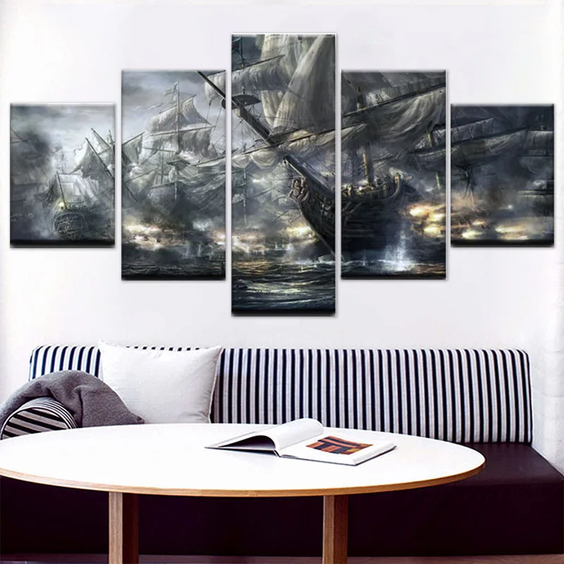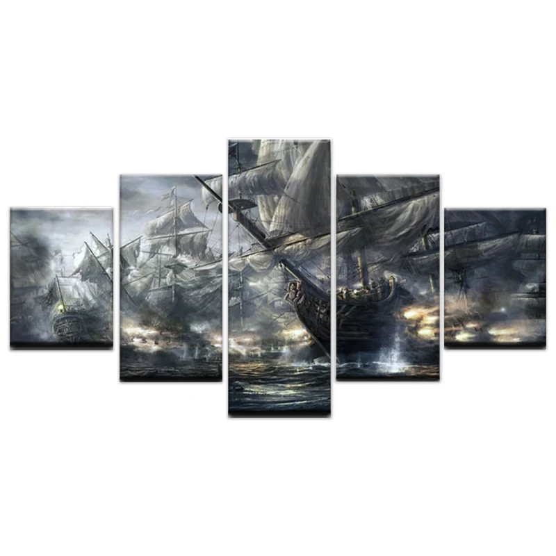 Картины пиратские корабли битвы на море 5 шт., печатные настенные картины на холсте для гостиной, современный дизайн, украшение для дома