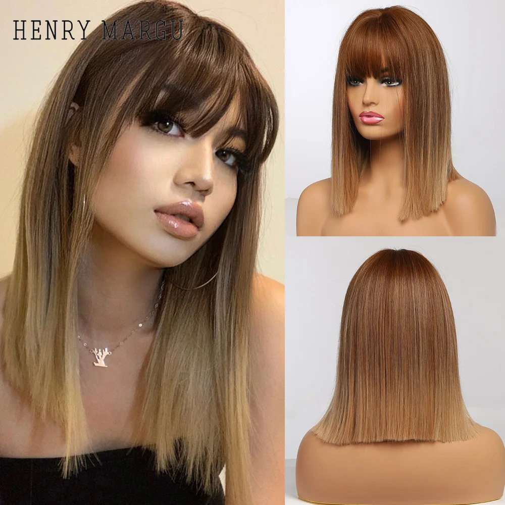 Женский короткий прямой коричневый парик с черной челкой Генри маргу, повседневный термостойкий синтетический парик, длина до плеч