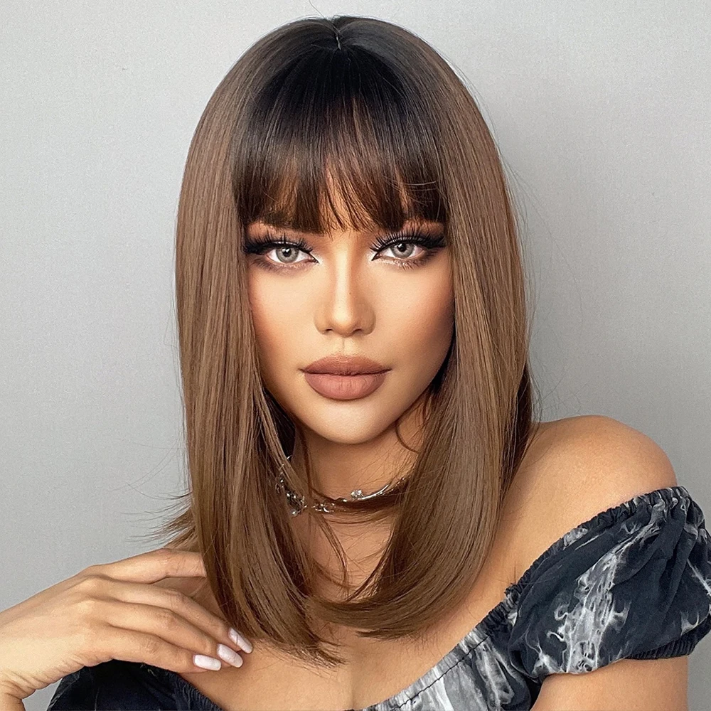 Короткий прямой парик из коричневого Боба с черной челкой для черных женщин, жаростойкий синтетический парик, длина плеча, парик❤Посылка включает в себя: 1 парик + 1 парик❤Материал: высококачественные синтетические волосы, которые выглядят как настоящие человеческие волосы. Мягкий, приятный для кожи и удобный.❤Характеристики: парик из высокотемпературного волокна, который может выдерживать высокую температуру 150 градусов Цельсия (300 градусов по Фаренгейту)❤Шляпа и Размер: средний размер подходит для большинства людей. Есть два регулируемых ремня с обеих сторон парика, вы можете настроить его на размер головы, который вам подходит.❤Случаи: идеально подходят для всех случаев, будь то повседневная работа, свадьбы, вечеринки, концерты, ролевые игры, тематические вечеринки, Хэллоуин или Видеосъемка, это ваш лучший выбор. Также отличный подарок для родственников и друзей.❤Напоминание: если вы не знаете, как ухаживать за париком, пожалуйста, свяжитесь с нами.