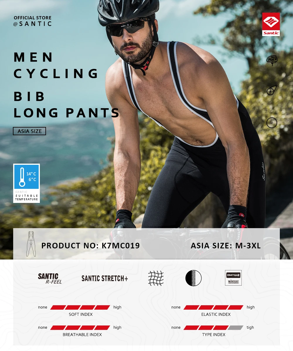 Мужской зимний велосипедный комбинезон Santic, плотный теплый велосипедный комбинезон, длинные брюки, теплые велосипедные брюки, велосипедные Светоотражающие K7MC019H