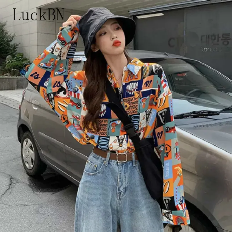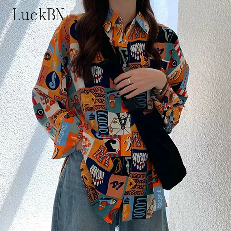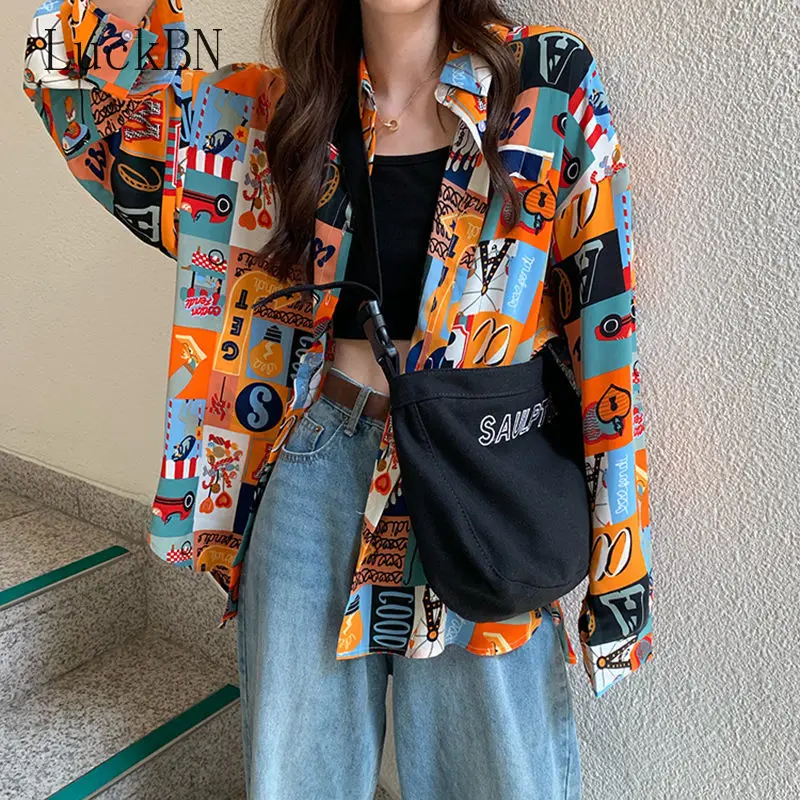 Корейский Стиль в стиле пэчворк с длинным рукавом, свободная женская блуза, рубашка на пуговицах размера плюс, женские рубашки 2021 сезон: весна-лето женские топы для девочек, Новинка