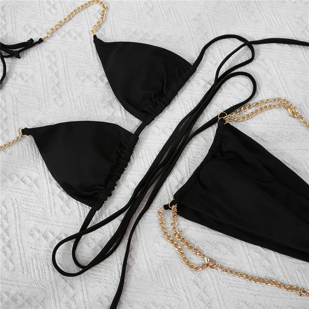 Женский черный комплект бикини, роскошный золотой купальник с цепочками для девушек, брендовый дизайн, купальник, монокини, купальный костюм, женский купальник